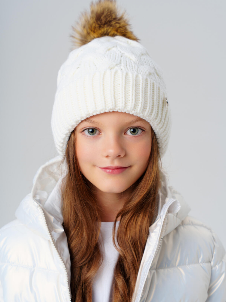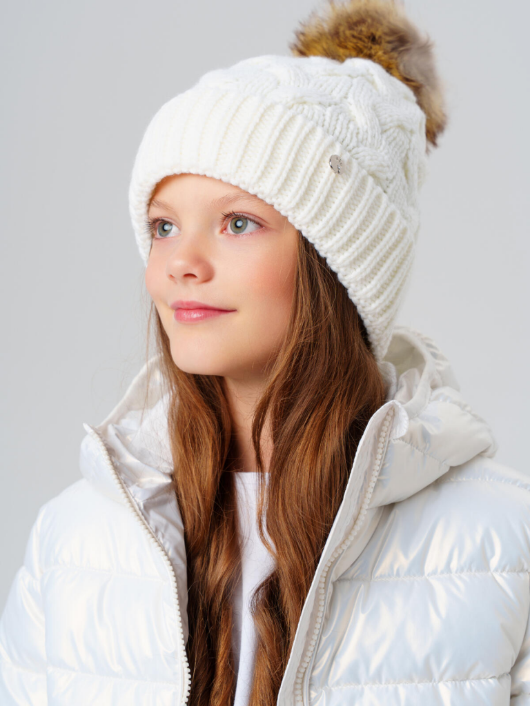 Шапка трикотажная для девочек молочный