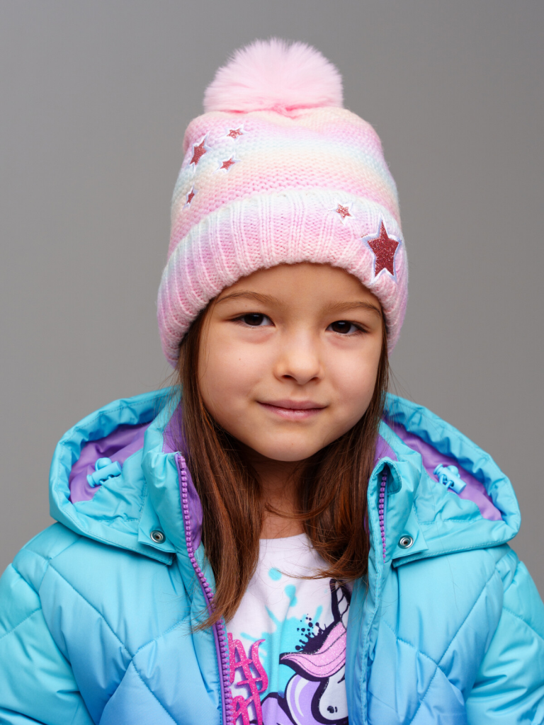 Вязаная детская шапка для девочки. Модная шапка из акрила отлично подойдет на холодное время года ( осень, зима). Модель из капсульной коллекции UNICORN KUROMI (ЮНИКОРН КОРОМИ). Соберите полный образ в едином стиле!