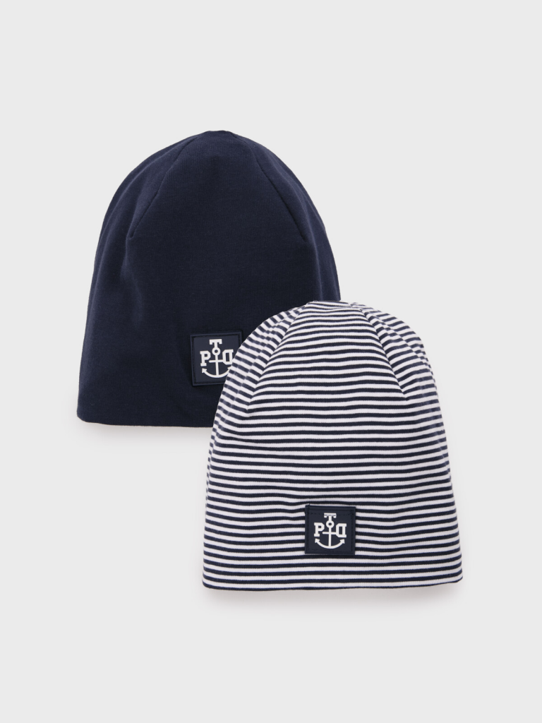 > Шапка трикотажная для мальчиков, 2 шт в комплекте тёмно-синий,белый