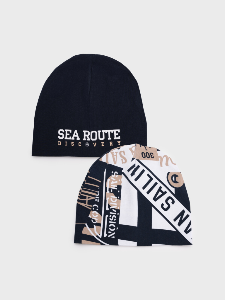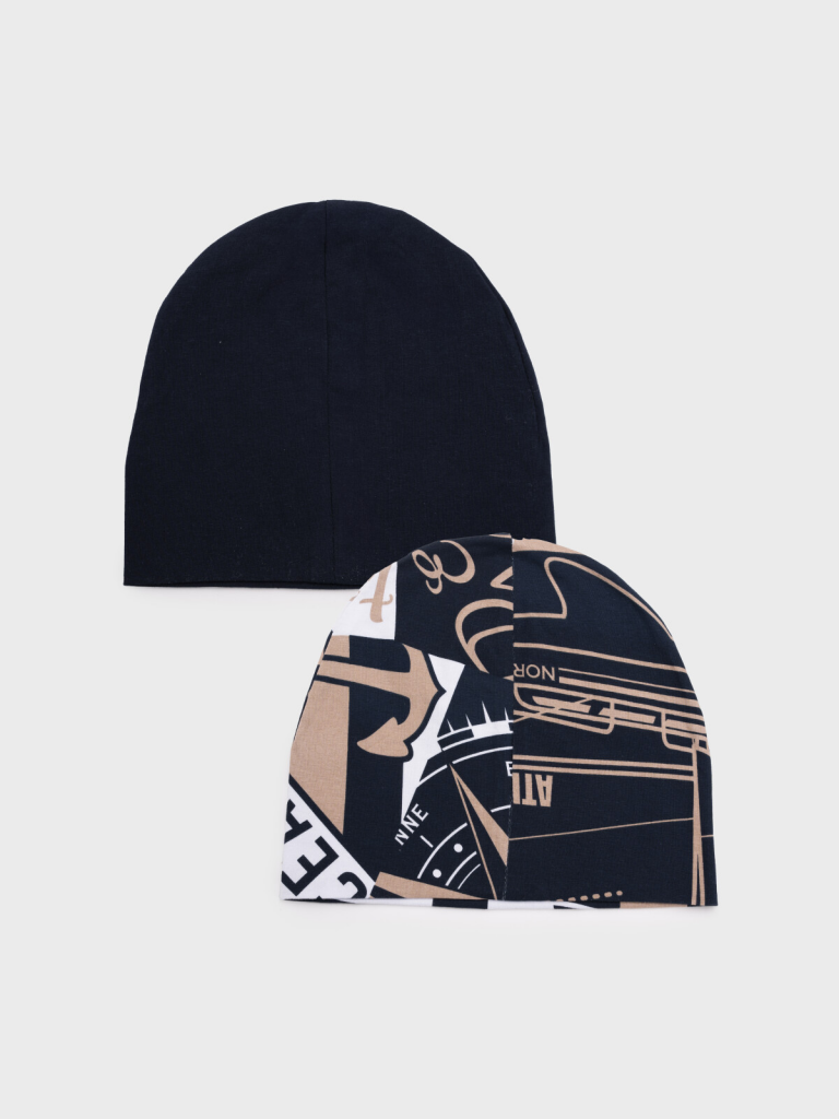 > Шапка трикотажная для мальчиков, 2 шт в комплекте тёмно-синий,бежевый,белый
