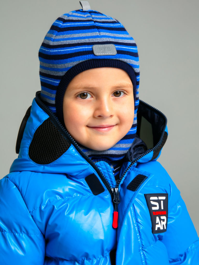 Шапка-шлем из вязаного трикотажа надежно защитит голову и шею ребенка от холода. Пряжа из акрила: легкая, теплая, гипоаллергенная. Шлем утеплен синтепоном. Подкладка из мягкого трикотажа с высоким содержанием хлопка 95%. Светоотражающая нашивка.