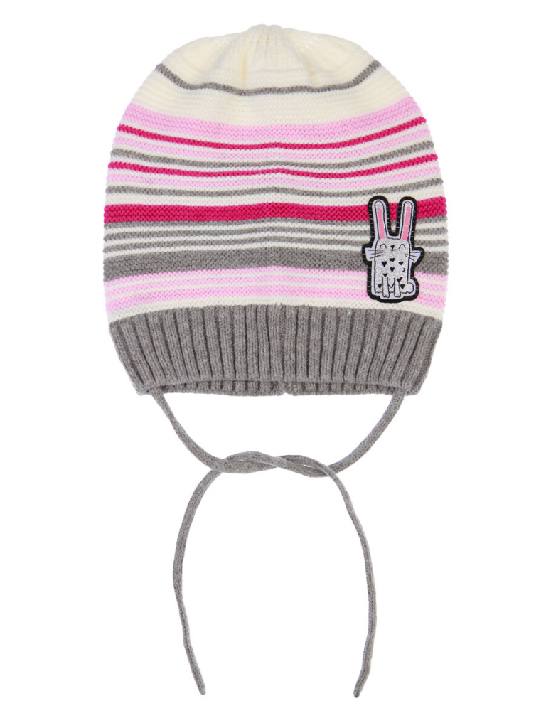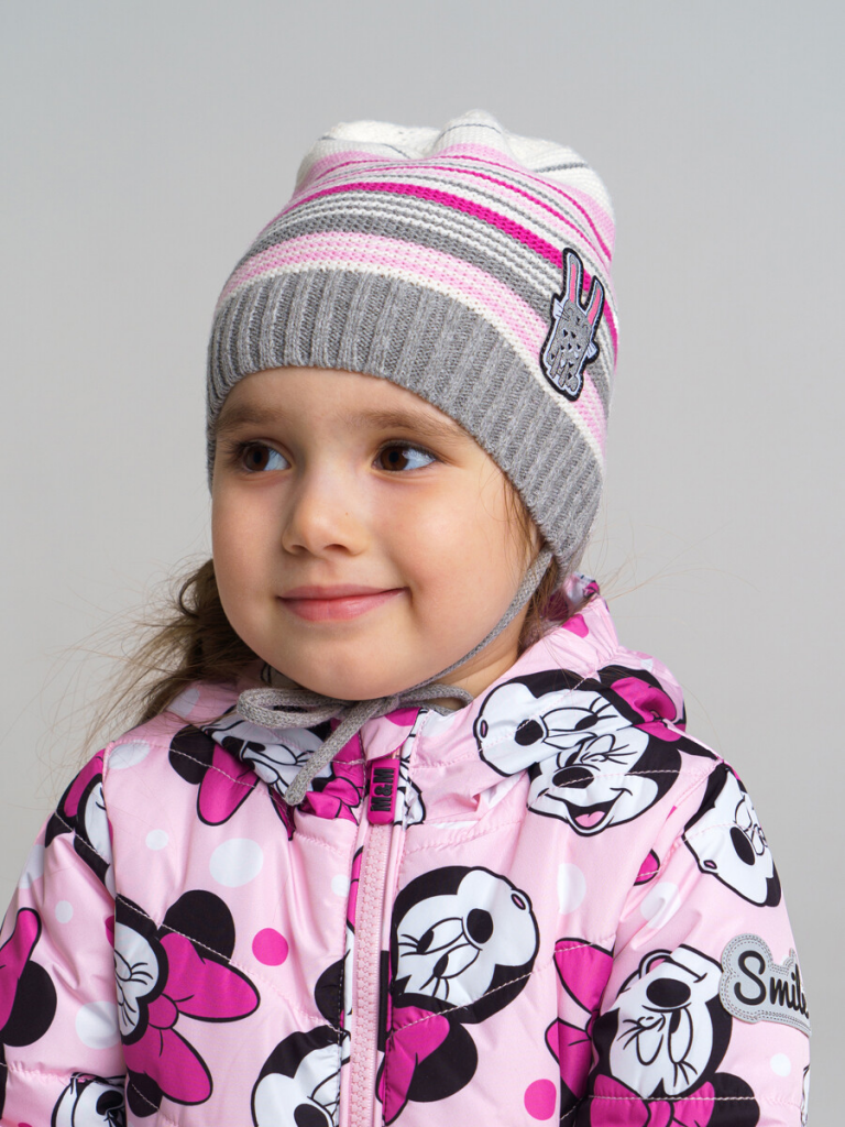 Шапка из вязаного трикотажа с завязками. Пряжа из акрила с хлопком легкая, теплая, гипоаллергенная. Одинарная вязка. Трикотажная подкладка.
