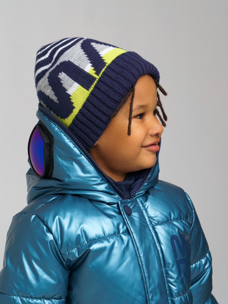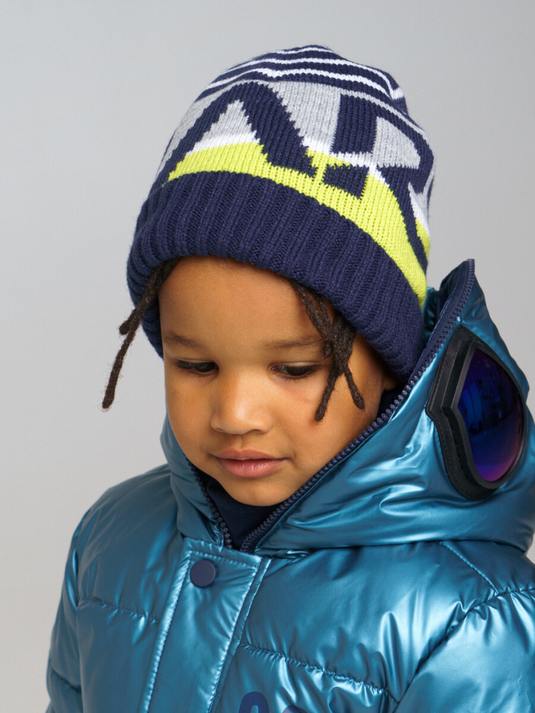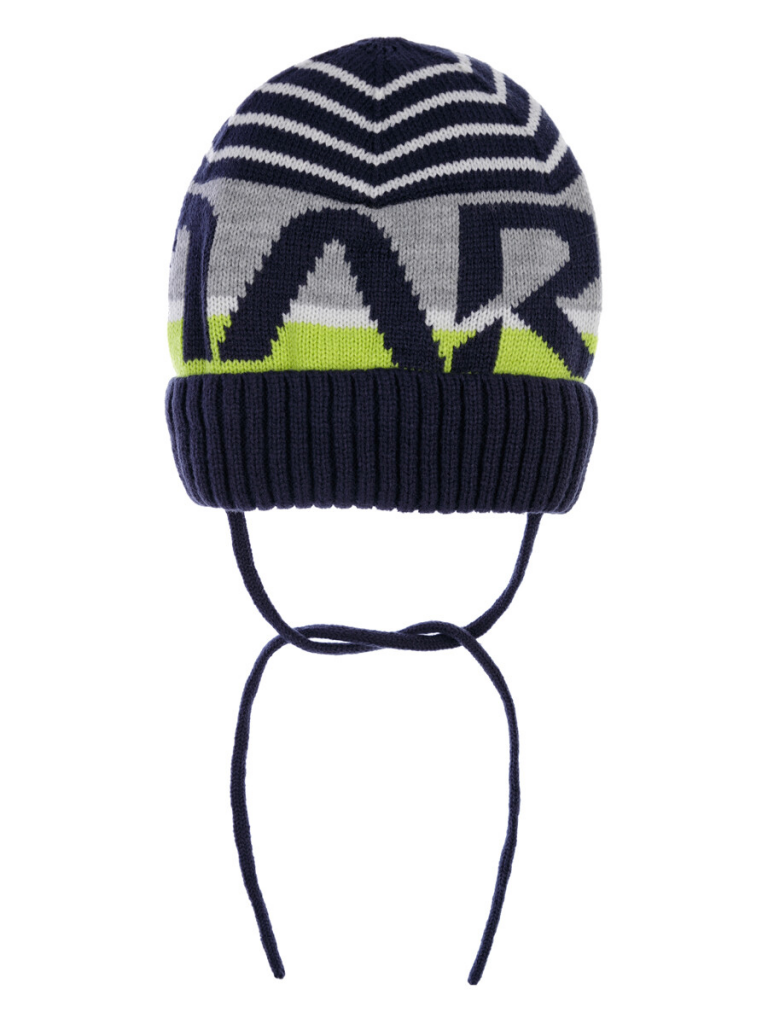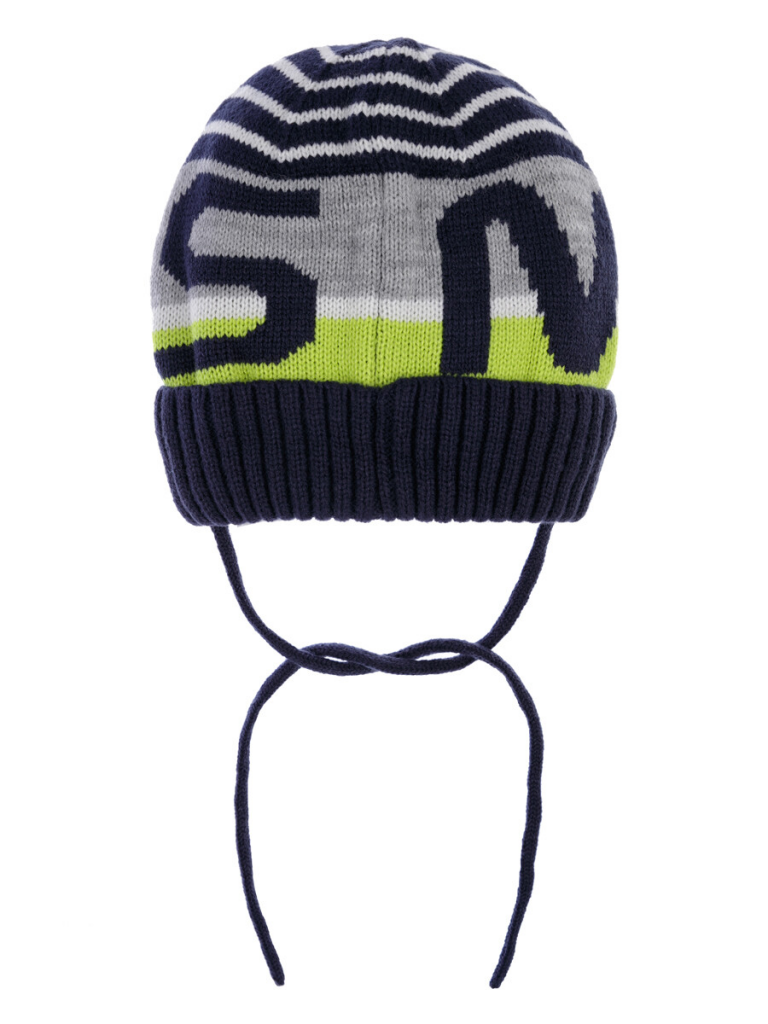> Шапка вязаная для мальчика тёмно-синий,белый,светло-зеленый,светло-серый