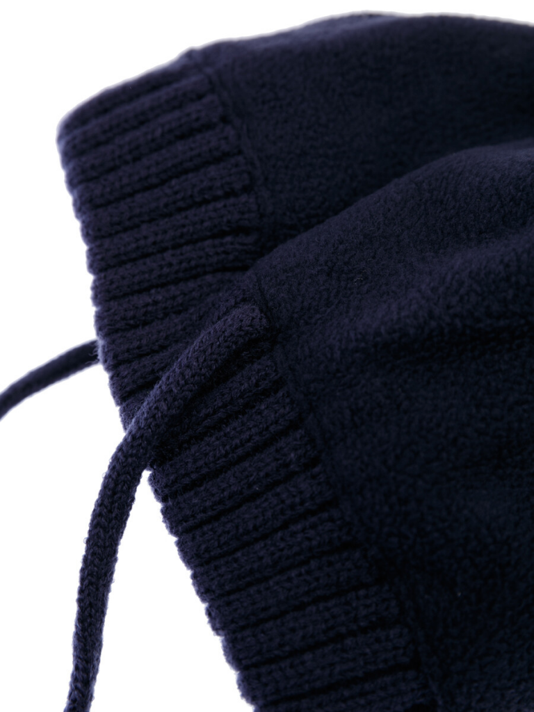 Шапка из вязаного трикотажа на завязках. Пряжа из акрила: легкая, теплая, гипоаллергенная. Подкладка из мягкого, теплого флиса. Завязки.