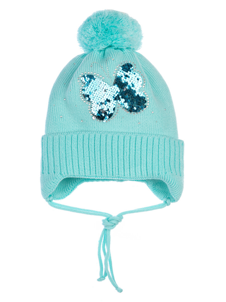 > Шапка вязаная с помпоном для девочки светло-зеленый