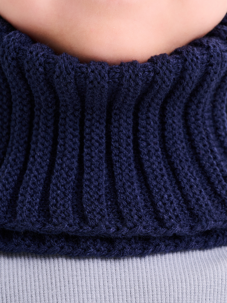 Мягкий и тёплый вязаный снуд из акриловой пряжи — идеальный аксессуар для защиты малыша от ветра и холода. Объемная эластичная резинка позволяет снуду легко облегать шейку и надёжно закрывать подбородок, обеспечивая комфорт и тепло в один оборот. Универсальный размер One Size подходит как для младенцев, так и для подростков. Широкая вязаная труба надевается через голову и не развязывается во время активных игр на улице, оставаясь надёжной защитой в ветреную весеннюю погоду.