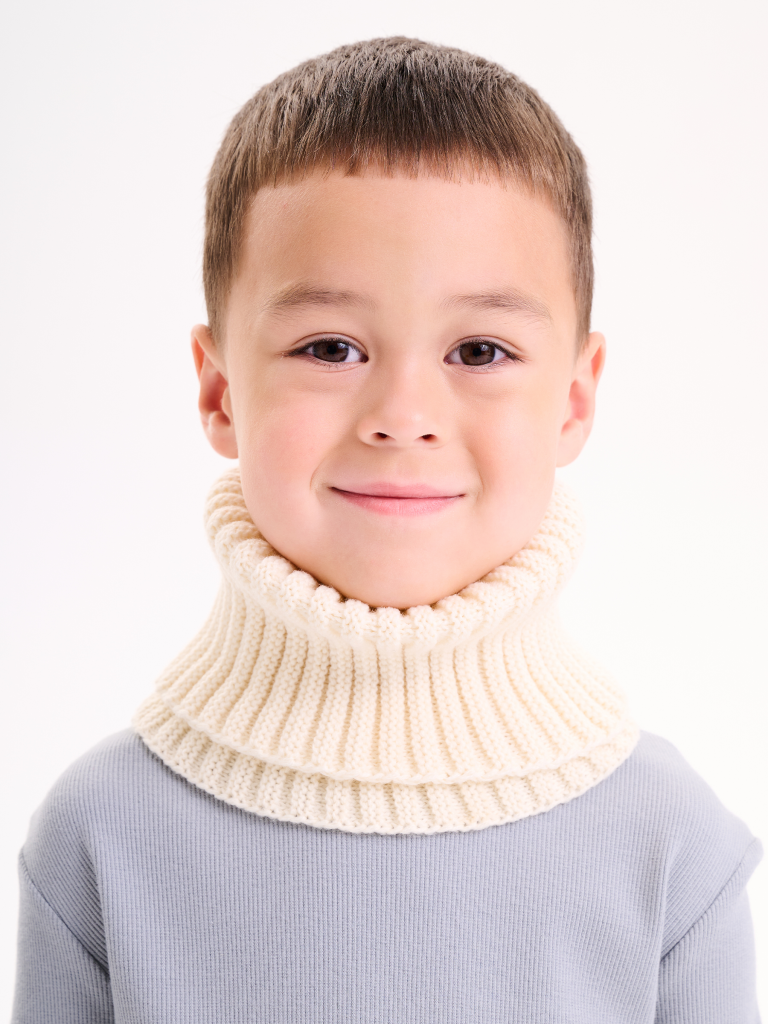 Мягкий и тёплый вязаный снуд из акриловой пряжи — идеальный аксессуар для защиты малыша от ветра и холода. Объемная эластичная резинка позволяет снуду легко облегать шейку и надёжно закрывать подбородок, обеспечивая комфорт и тепло в один оборот. Универсальный размер One Size подходит как для младенцев, так и для подростков. Широкая вязаная труба надевается через голову и не развязывается во время активных игр на улице, оставаясь надёжной защитой в ветреную весеннюю погоду.