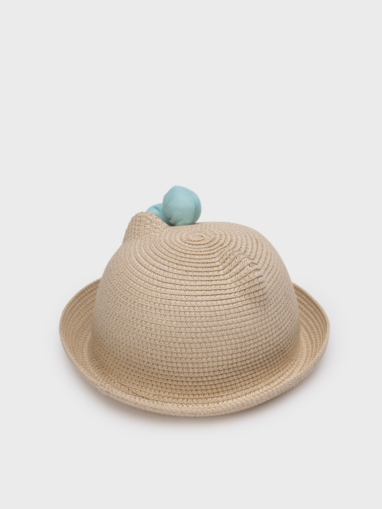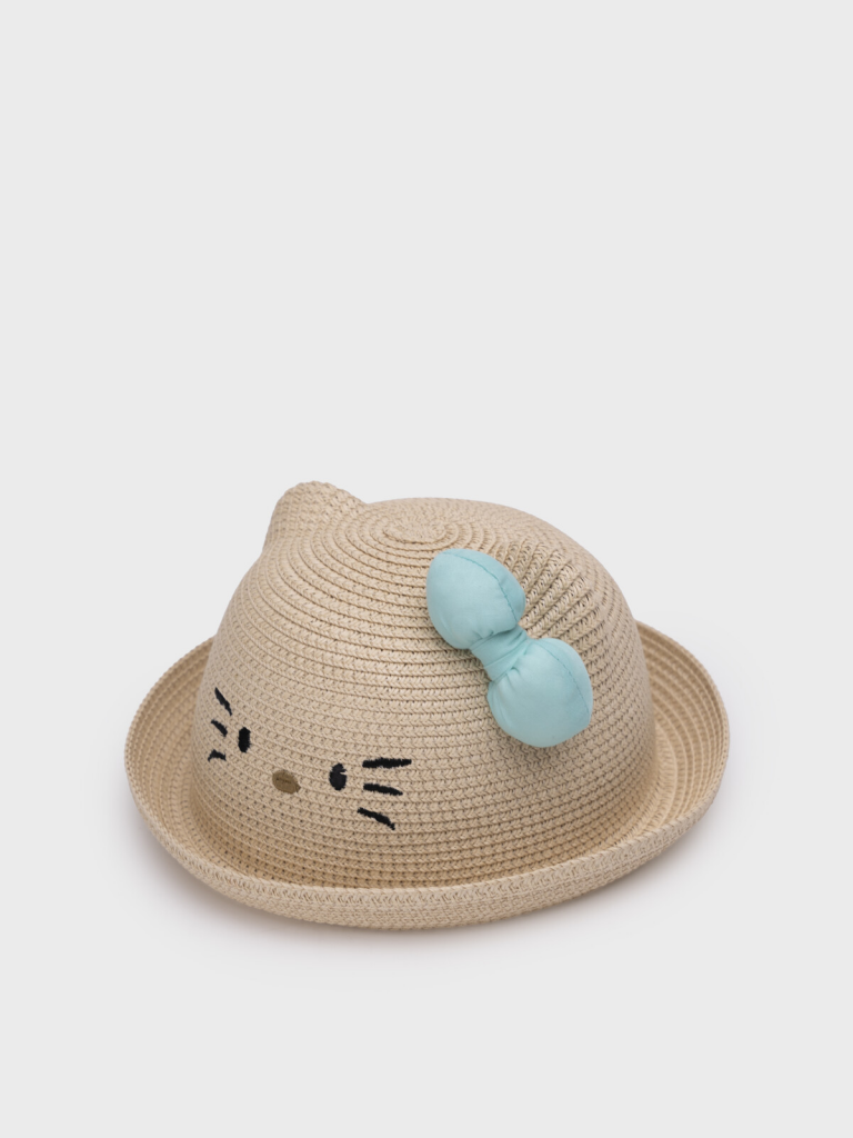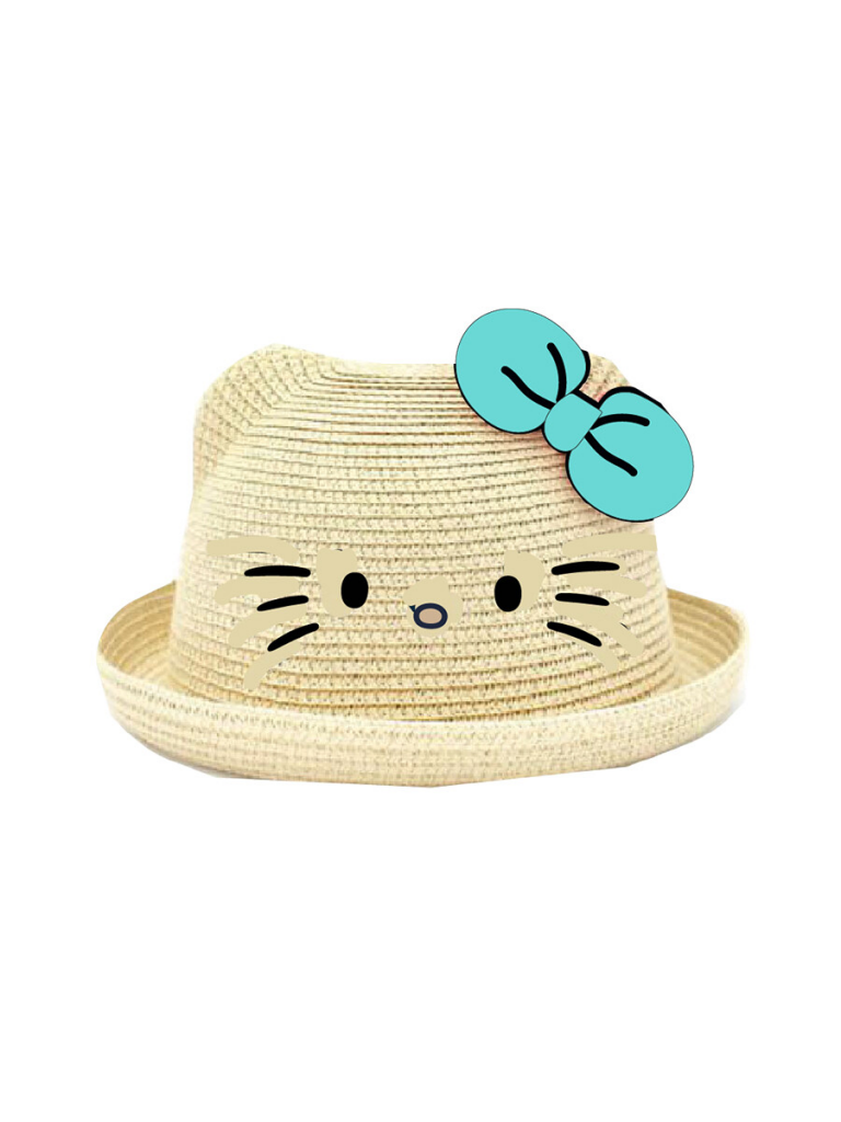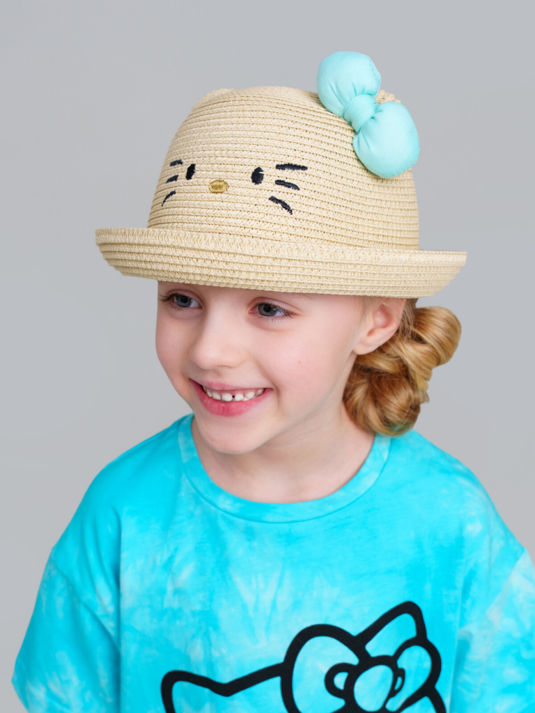 Шляпа детская для девочки. Шляпа соломенная. 100% натуральный материал бумажная соломка. Дизайн мордочка кошки. Декор-бантик сбоку из отделочной ленты.