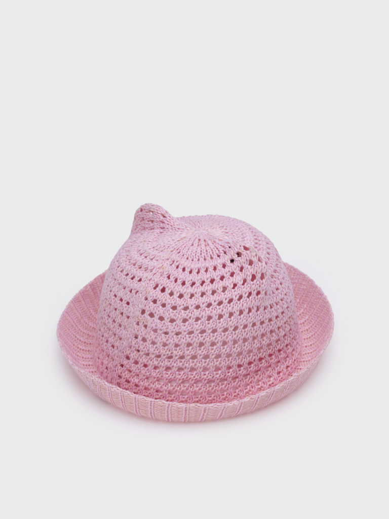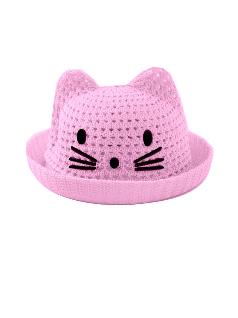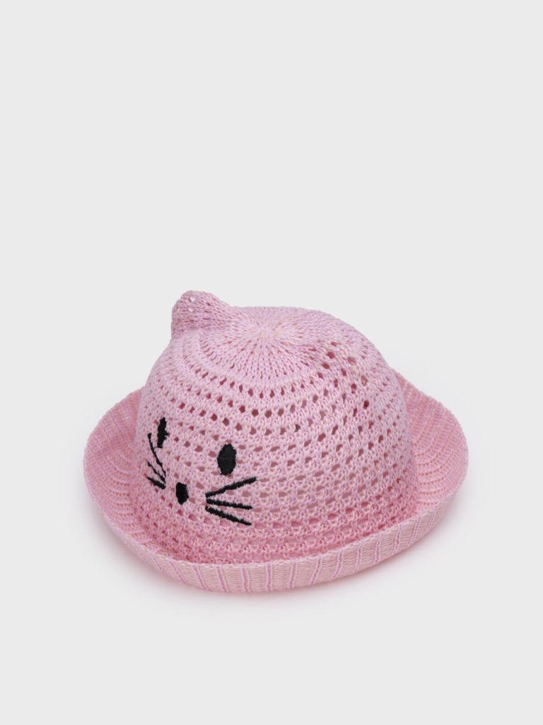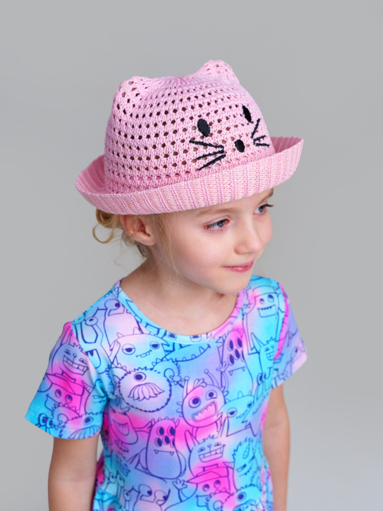 Шляпа детская для девочки. Дизайн мордочка кошки. Внутренняя регулировка размера по обхвату головы за счет атласных ленточек.