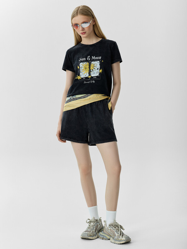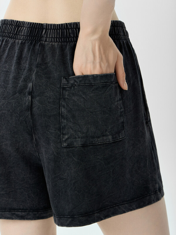 Женские шорты свободного кроя — это свежий взгляд на повседневную летнюю одежду, сочетающий стиль и функциональность. Короткая длина и высокая посадка визуально удлиняют ноги, подчеркивая фигуру, а свободный силуэт обеспечивает абсолютную свободу движений и комфорт в течение всего дня. Эластичный пояс мягко фиксирует шорты на талии, позволяя им подстраиваться под индивидуальные особенности тела без ощущения сдавленности. Боковые швы скрывают практичные карманы, в которых удобно разместить необходимые мелочи, а накладной карман на задней правой половине — это дополнительный акцент, придающий модели легкую нотку уличного стиля. Обработка нижних срезов в подгибку обеспечивает аккуратный и завершенный вид, сохраняя форму изделия после стирки. Изготовленные из натурального хлопка, шорты отличаются мягкостью и воздухопроницаемостью, делая их идеальными для жарких дней. Это универсальная вещь, которую легко сочетать с майками, топами или рубашками — выбор, который точно оценит любительница легкого, стильного и удобного гардероба.