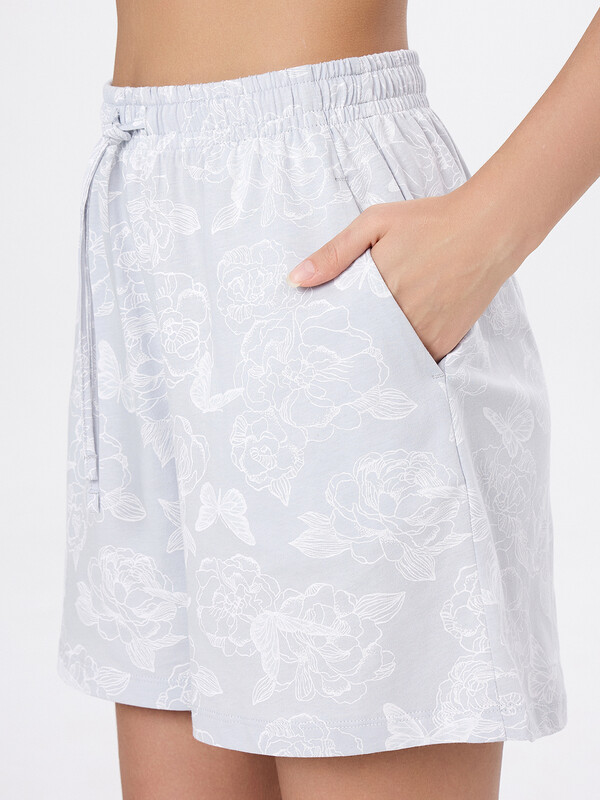 Женские домашние шорты прямого силуэта — это легкая и удобная модель, идеально подходящая для отдыха и повседневной домашней носки. Короткая длина делает их особенно комфортными в тёплое время года, а прямой крой обеспечивает свободу движений. Эластичный пояс мягко фиксируется на талии, а декоративный шнур, протянутый через пробитые петли по центру, добавляет акцент и позволяет регулировать посадку. Карманы типа "хулиганы" придают образу непринужденность, оставаясь при этом функциональными. Низ шорт аккуратно обработан швом вподгибку, что сохраняет форму и делает изделие более долговечным. Выполненные из натурального хлопка, шорты приятны к телу, хорошо дышат и легко стираются — идеальный выбор для домашнего комфорта.