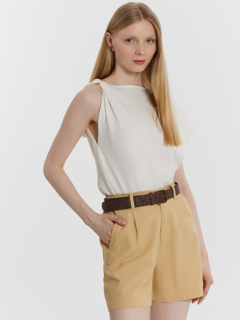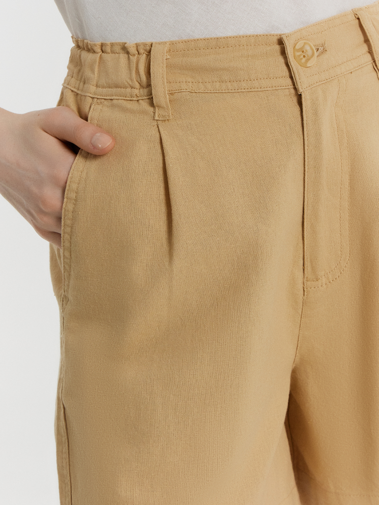 Женские шорты Mark Formelle — идеальный элемент базового летнего гардероба, который сочетает комфорт, стиль и практичность. Прямой крой обеспечивает свободу движений и удобную посадку, позволяя легко комбинировать шорты с различными вариантами одежды. Частично эластичная талия на спинке гарантирует мягкую фиксацию и комфортную посадку, обеспечивая удобство при носке. Застежка-молния, внутренняя кулиска и пуговица добавляют функциональности и стильных деталей, делая модель универсальной для повседневных и более нарядных образов. Боковые карманы добавляют практичности, позволяя удобно хранить небольшие предметы, делая модель еще удобнее в повседневном использовании. Материал — хлопок и лен — придает изделию легкость, воздухопроницаемость и натуральную текстуру. Лен известен своей способностью сохранять прохладу даже в жаркую погоду, а хлопок добавляет мягкость и комфортные тактильные ощущения, создавая идеальный баланс между практичностью и эстетикой. Эти шорты станут универсальным элементом летнего гардероба, который легко сочетается с футболками, блузами и легкими рубашками!