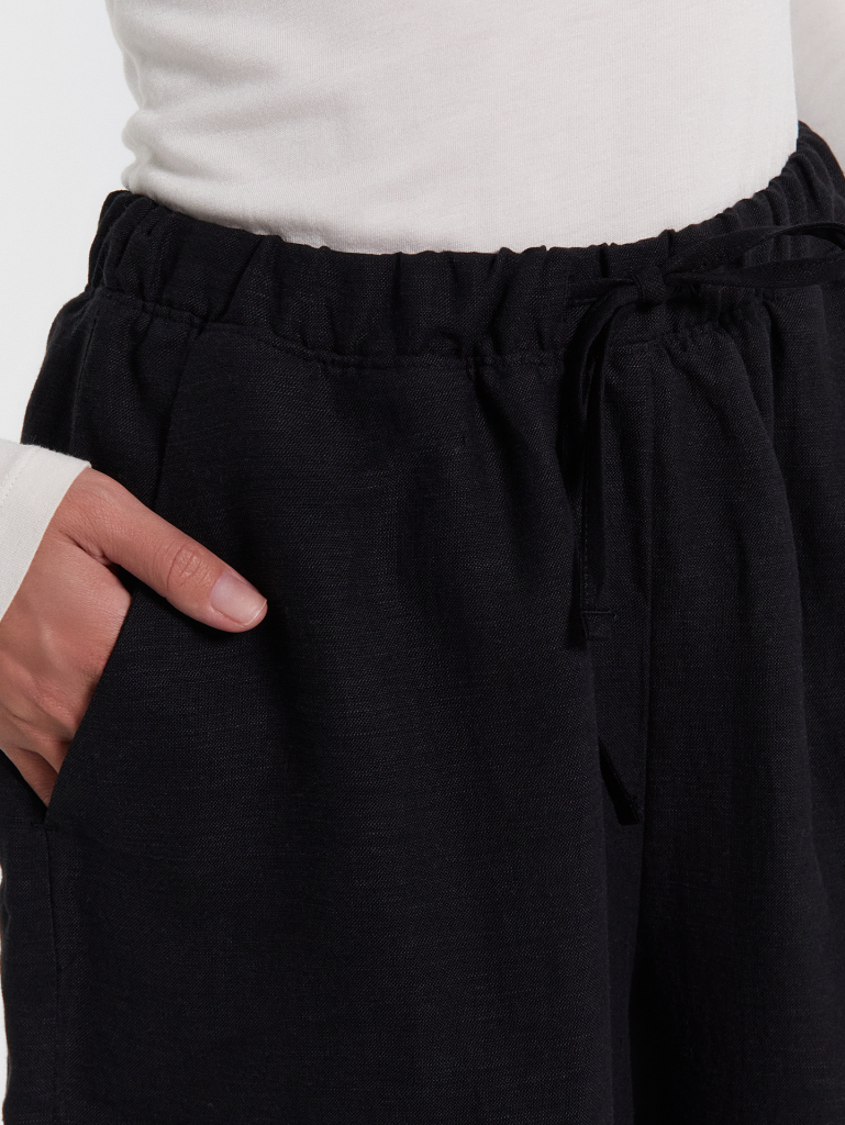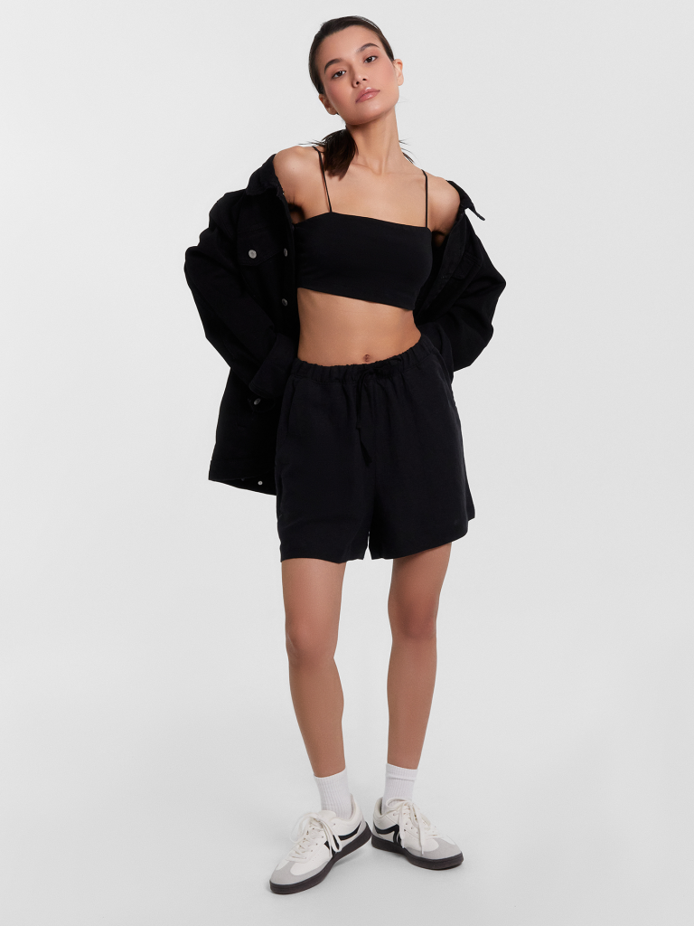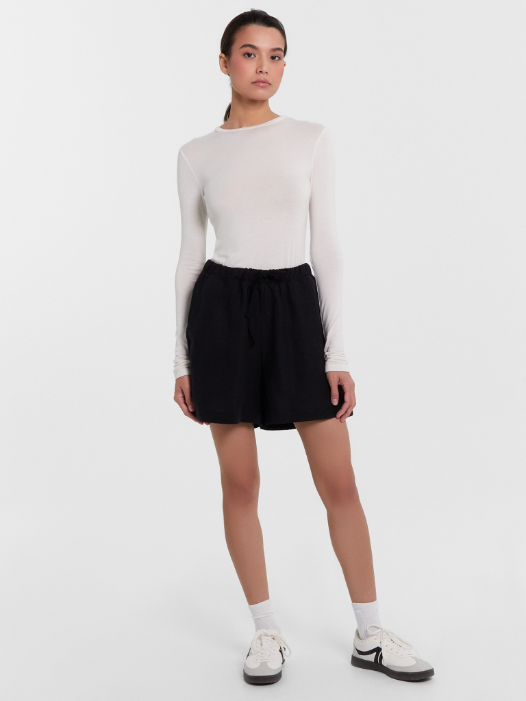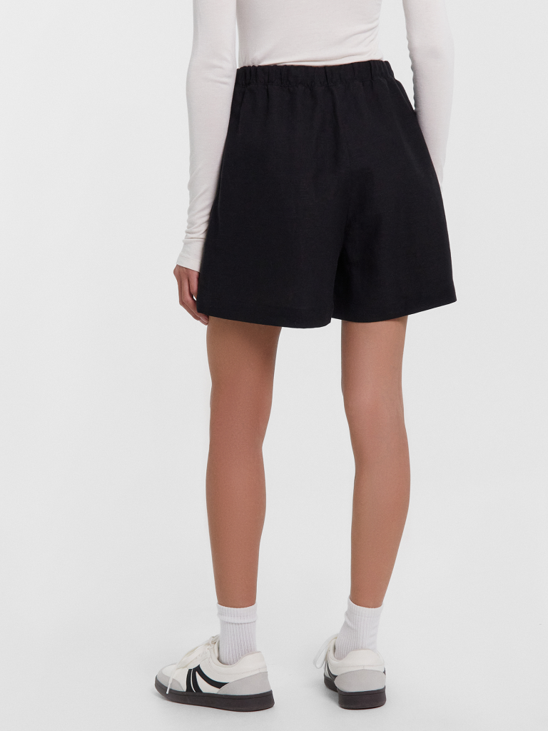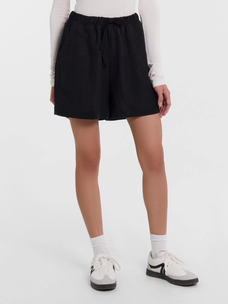 Женские шорты свободного силуэта с боковыми карманами и эластичным поясом на кулиске - это идеальное сочетание комфорта и стиля. Модель выполнена из смесового льна и вискозы, что придает изделию уникальные преимущества. Лён известен своей прочностью, долговечностью и прекрасной воздухопроницаемостью, что делает одежду из него идеальной для жаркой погоды. Он также обладает природными антибактериальными свойствами и гипоаллергенностью. В то время как вискоза добавляет мягкость и гладкость, улучшая тактильные ощущения и комфорт при носке.