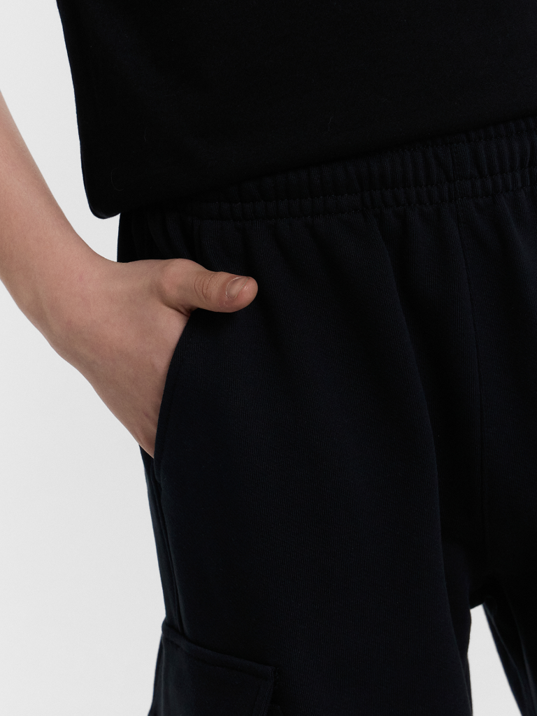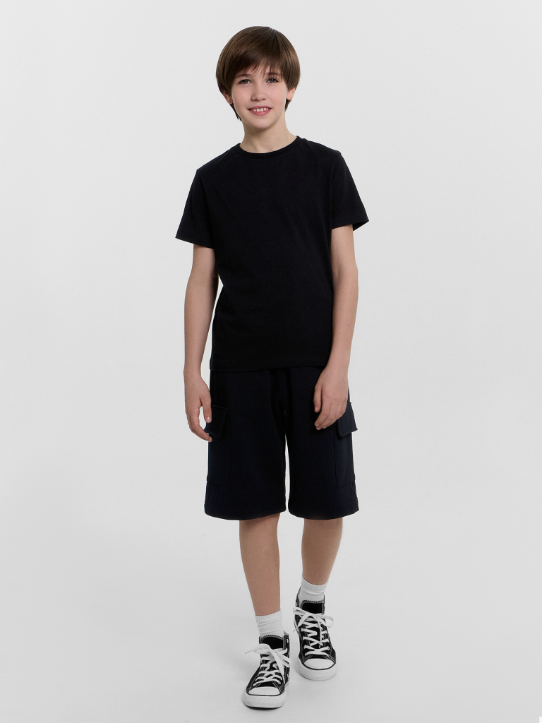 Шорты изготовлены из трикотажного полотна футер. Подкладка карманов из трикотажного кулирного полотна.