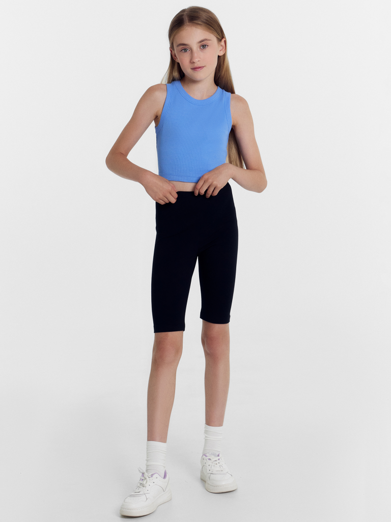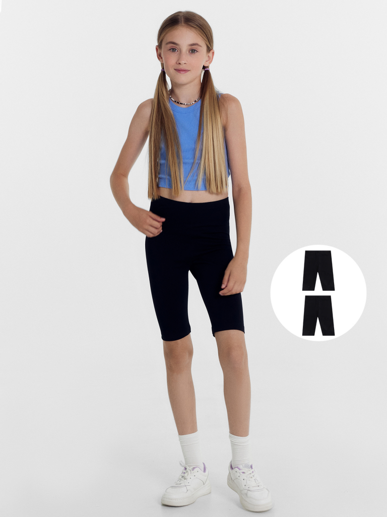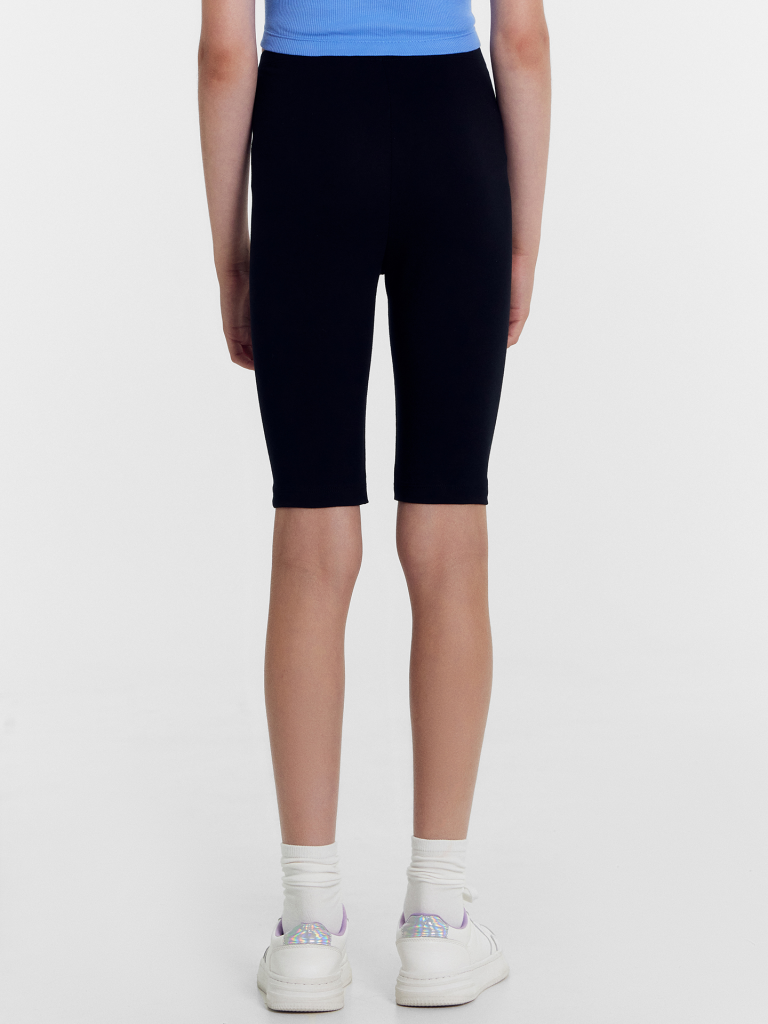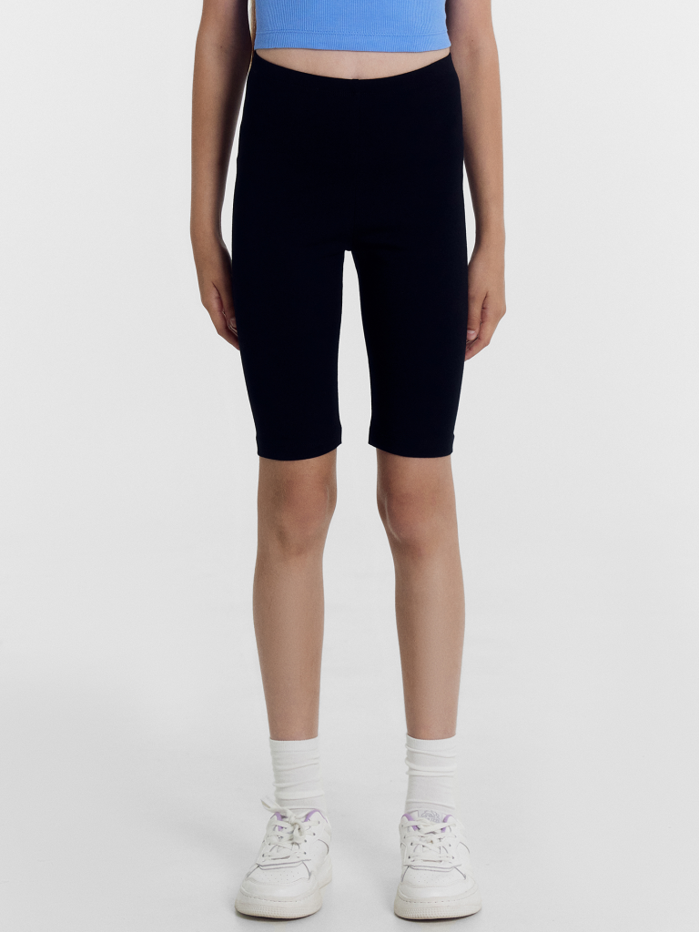 Шорты-велосипедки из трикотажного полотна кулирного переплетения. Длина шортов – до колена, силуэт – облегающий. Пояс с эластичной тесьмой. Нижние срезы подогнуты. Стильный и очень комфортный вариант!