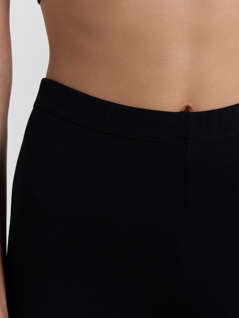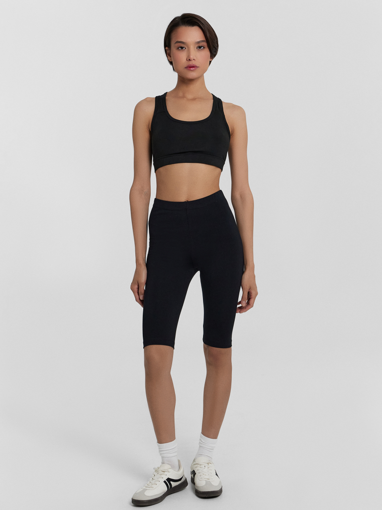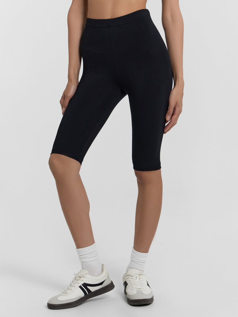 Отличные спортивные шорты. В составе полотна – натуральный хлопок и немного эластана. Длина до колена, силуэт прилегающий. Завышенная линия талии и широкий эластичный пояс дарят комфорт даже во время интенсивных занятий.