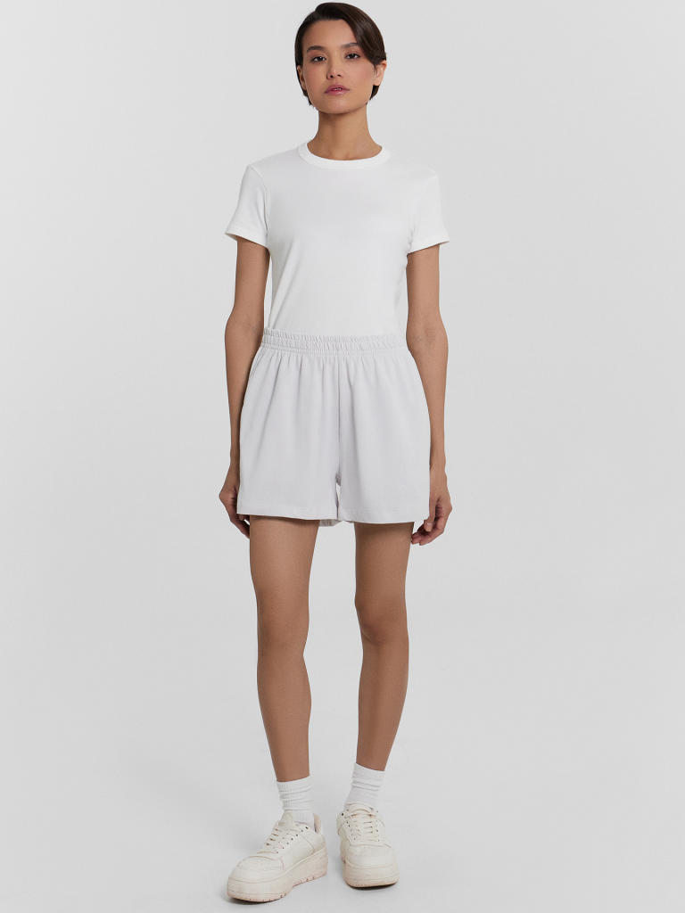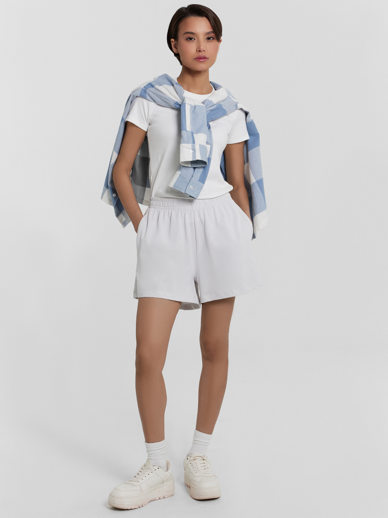 Свободные и стильные женские шорты – ваш незаменимый спутник для жарких летних дней! Модель с высокой посадкой идеально подчеркивает линию талии, а эластичный пояс обеспечивает удобную и комфортную посадку. Практичные боковые карманы и накладной карман сзади добавляют функциональности, позволяя хранить мелочи всегда под рукой. Шорты выполнены из натуральной хлопковой кулирки, что делает их мягкими, легкими и приятными к телу, обеспечивая комфорт даже в самую жаркую погоду. Нижние срезы аккуратно обработаны швом вподгибку, что придает изделию завершенный вид. Этот стильный и практичный элемент гардероба подойдет для прогулок, отдыха или встреч с друзьями – свобода и комфорт в каждом шаге!