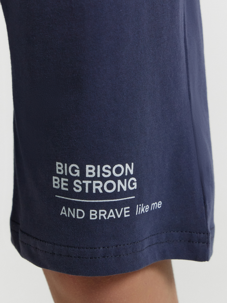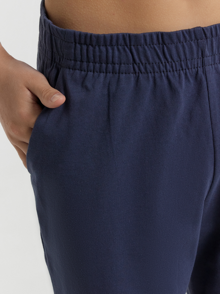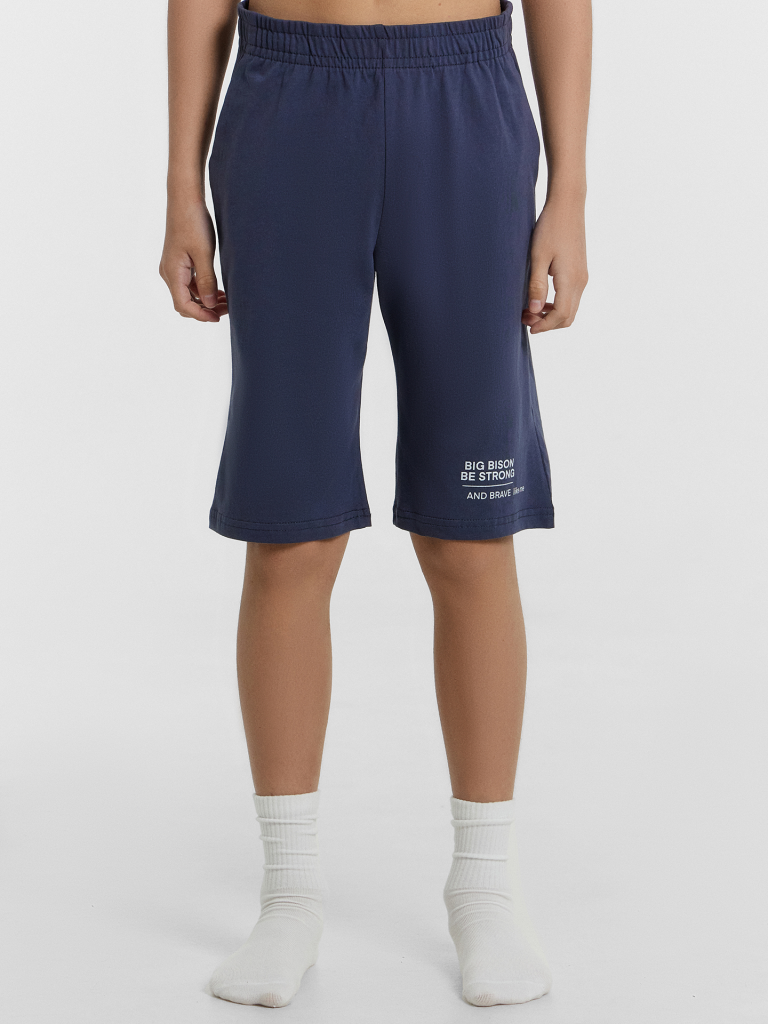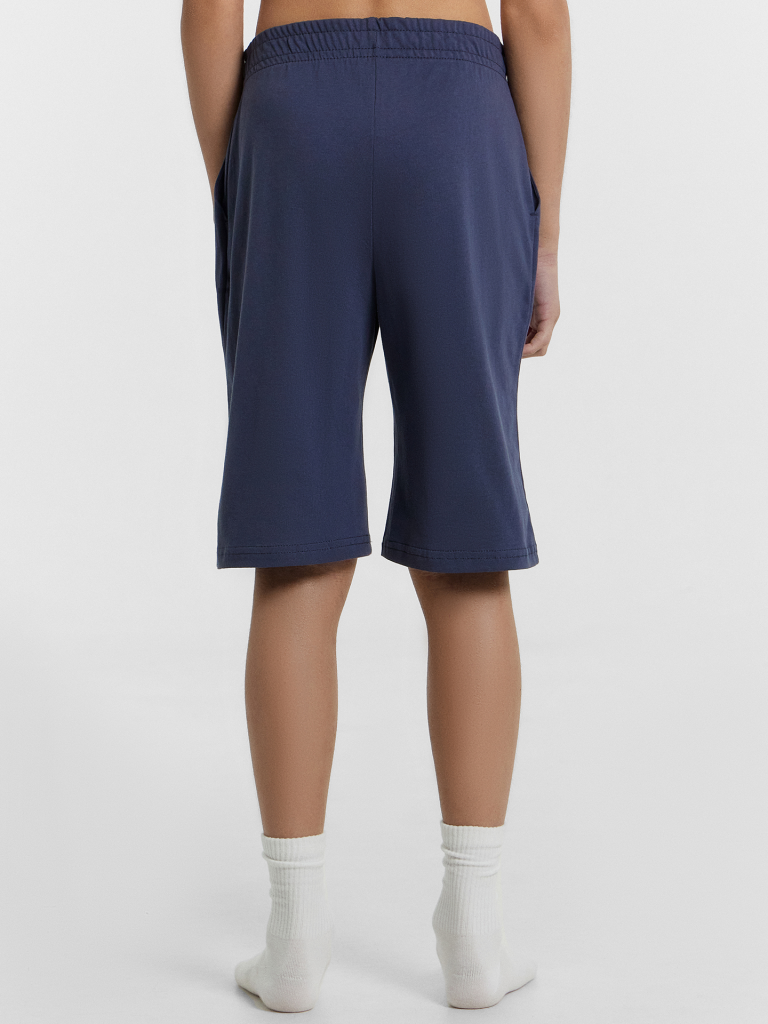 Шорты ниже колена, свободного силуэта с высокой посадкой на талии. Спереди карманы с отрезным бочком. Пояс цельнокроеный внутри с резиной 40RV. Низ шор в подгибку.