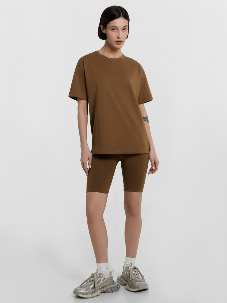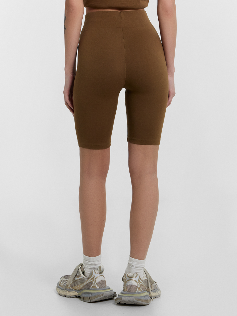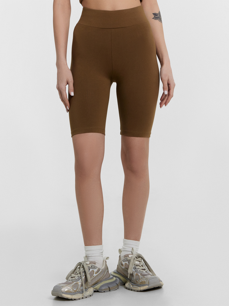 Шорты-велосипедки облегающего силуэта. Выполнены из нежной хлопковой кулирки. Длина модели выше колен. Линия талии завышенная. Широкий отрезной пояс и эластичная тесьма в талии дарят особый комфорт.