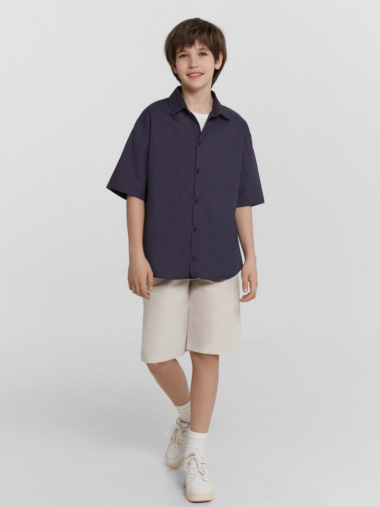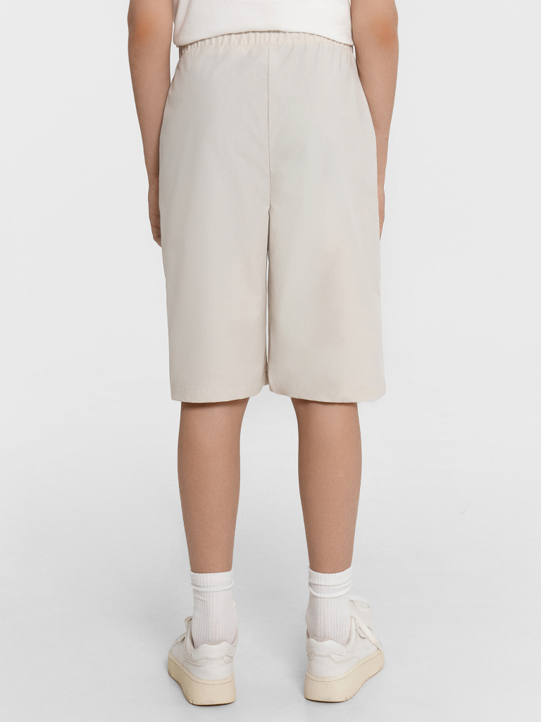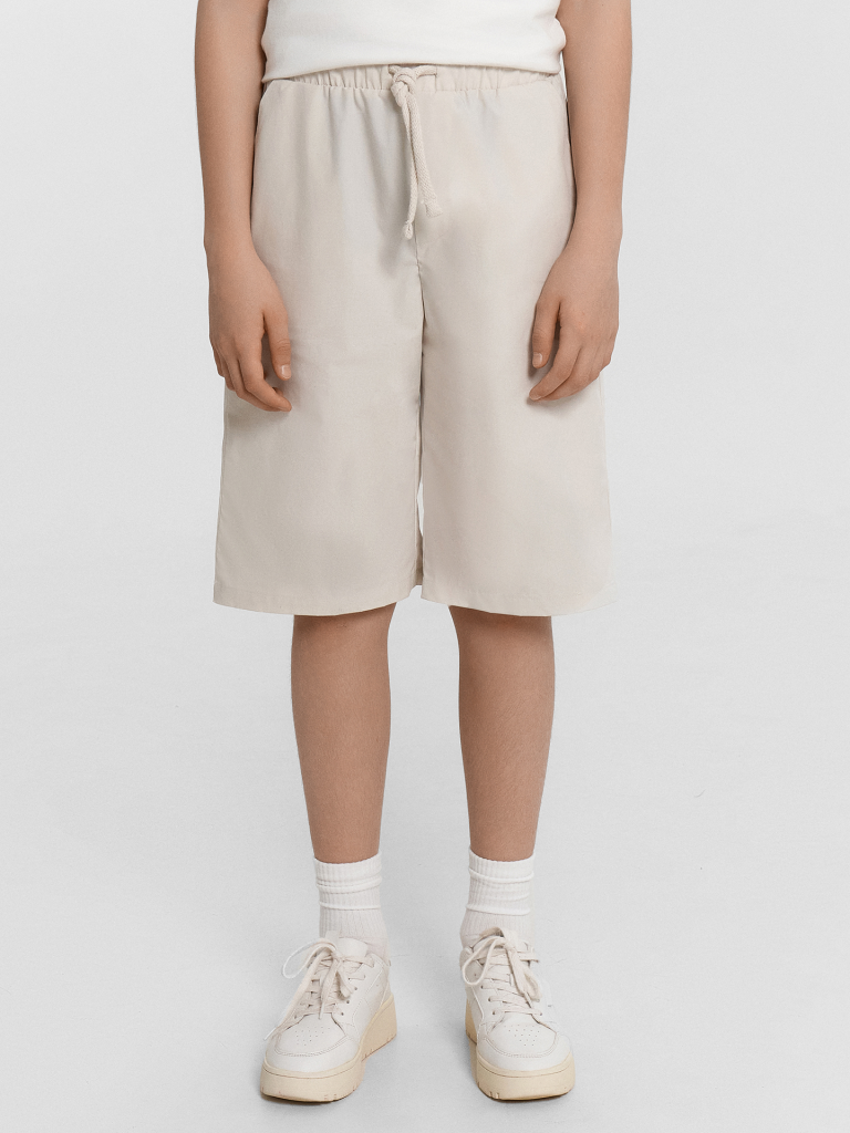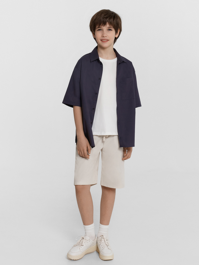 Шорты для мальчиков из ткани. Шорты с классической линией талии. Силуэт прямой. Пояс отрезной. Боковые швы перенесенны вперед. Карманы «хулиганы»