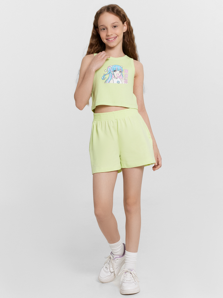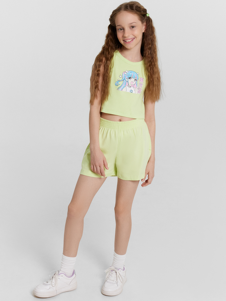 Стильные шорты для девочки — это практичная и универсальная модель, которая идеально подходит для теплого времени года. Классическая линия талии обеспечивает удобную посадку, а эластичный пояс добавляет гибкости, позволяя регулировать размер для оптимального комфорта. Боковые карманы добавляют функциональности, предоставляя место для хранения мелочей или небольших аксессуаров. Шорты выполнены из трикотажной кулирки — материала, который отличается мягкостью, легкостью и превосходной воздухопроницаемостью. Это делает их идеальными для активного отдыха и прогулок, обеспечивая комфорт даже в жаркую погоду. Чтобы завершить образ, шорты можно дополнить подходящим топом из той же коллекции, создавая гармоничный комплект для повседневного гардероба девочки. Такой наряд станет стильным и удобным выбором для игр, прогулок и других летних активностей. Рекомендуем!
