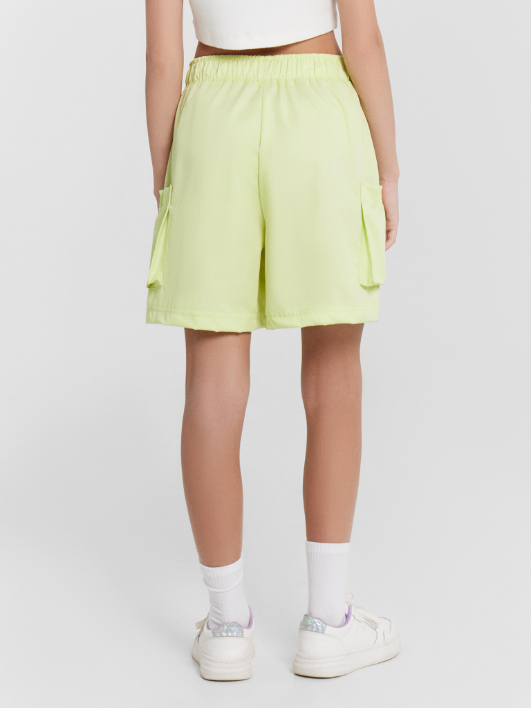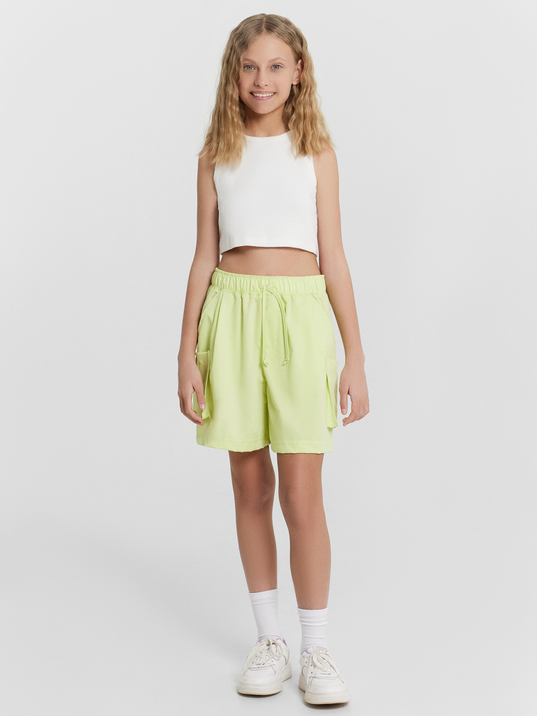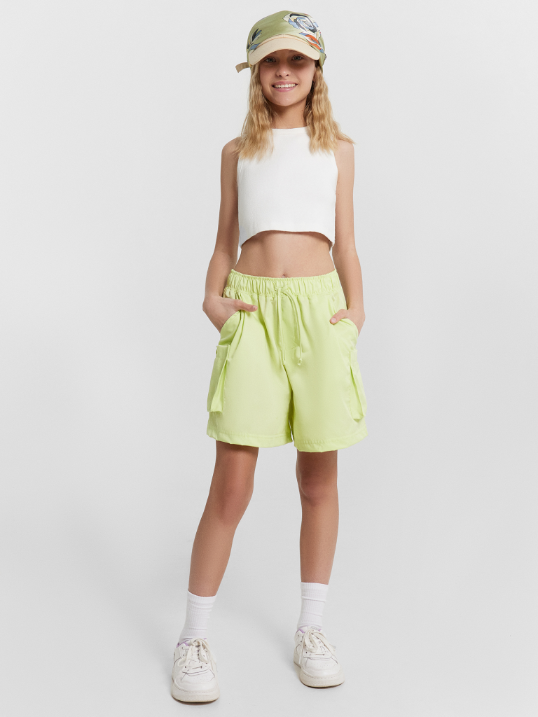 Эти шорты для девочек — удобное и стильное решение для повседневных образов и активного отдыха. Модель оснащена эластичным поясом на кулиске, который обеспечивает комфортную посадку и удобство при движении. Такая конструкция позволяет легко адаптироваться к фигуре, не создавая дискомфорта. Особый акцент в дизайне — клапаны на боковых деталях, имитирующие карманы, придающие шортам стильный вид и добавляющие оригинальности в повседневный образ. Нижний край обработан швом вподгибку, что делает изделие аккуратным и долговечным, предотвращая преждевременное изнашивание. Шорты выполнены из смесового хлопка — материала, который сочетает мягкость натуральных волокон с прочностью и устойчивостью к деформации. Это обеспечивает удобство, воздухопроницаемость и практичность в повседневной носке. Отличный выбор для прогулок, игр и активного отдыха, который гармонично сочетается с различными топами и футболками, создавая легкие и стильные образы!