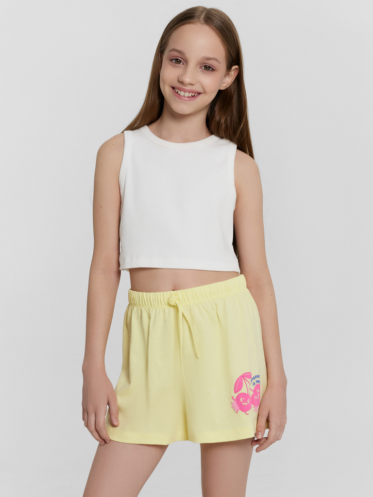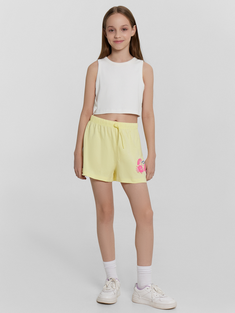 Удобные шорты для девочек — идеальный выбор для жаркого летнего сезона. Модель выполнена из хлопковой кулирки, которая отличается мягкостью, воздухопроницаемостью и комфортом, что особенно важно для активных детских игр. Свободный силуэт и мини-длина обеспечивают максимальную свободу движений, позволяя вашему ребенку чувствовать себя непринужденно и удобно. Эластичный пояс на кулиске с мягкой посадкой добавляют функциональности, позволяя настроить ширину талии под индивидуальные параметры. Подогнутые нижние срезы добавляют аккуратности изделию, подчеркивая его продуманный дизайн. Такие шорты отлично комбинируются с топами и футболками, создавая легкие и стильные летние образы. Прекрасный выбор для яркого и комфортного детства!