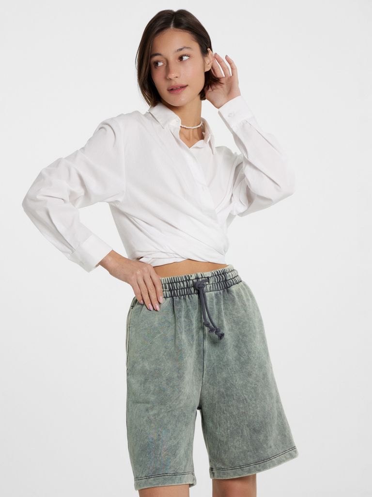 Стильные женские шорты, выполненные из высококачественного футера без подчеса. Эта модель — одно из уникальных изделий, которые проходят этап дополнительной обработки. Благодаря эффекту "варка", каждая вещь отличается своим особенным и неповторимым рисунком. Любые видимые отличия являются частью характеристики изделия. Посадка отличная — пояс на резинке с регулировочным шнурком внутри. Изготовленные из натурального хлопка, они обеспечивают непревзойденный комфорт в течение всего дня. Широкий крой обеспечивает свободу движений, делая эти шорты идеальными для активного отдыха или повседневной носки. Широкий размерный ряд. Лучший выбор для жаркого летнего сезона!