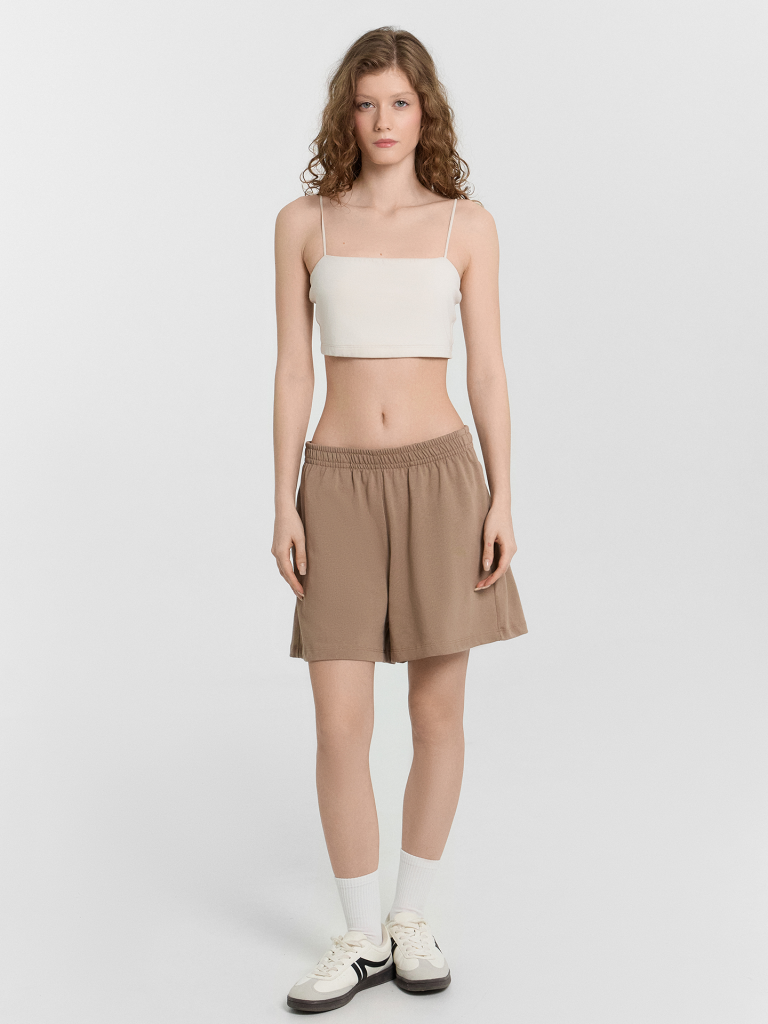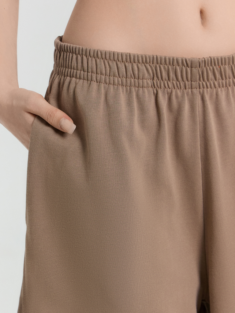 Свободные и стильные женские шорты – ваш незаменимый спутник для жарких летних дней! Модель с высокой посадкой идеально подчеркивает линию талии, а эластичный пояс обеспечивает удобную и комфортную посадку. Практичные боковые карманы и накладной карман сзади добавляют функциональности, позволяя хранить мелочи всегда под рукой. Шорты выполнены из натуральной хлопковой кулирки, что делает их мягкими, легкими и приятными к телу, обеспечивая комфорт даже в самую жаркую погоду. Нижние срезы аккуратно обработаны швом вподгибку, что придает изделию завершенный вид. Этот стильный и практичный элемент гардероба подойдет для прогулок, отдыха или встреч с друзьями – свобода и комфорт в каждом шаге!