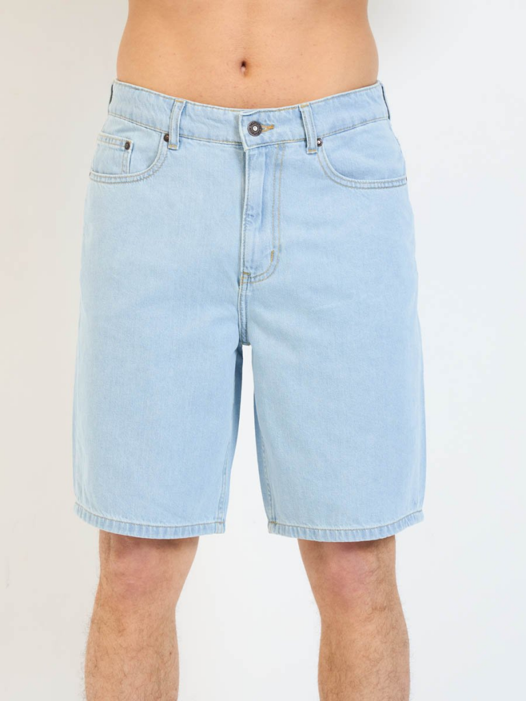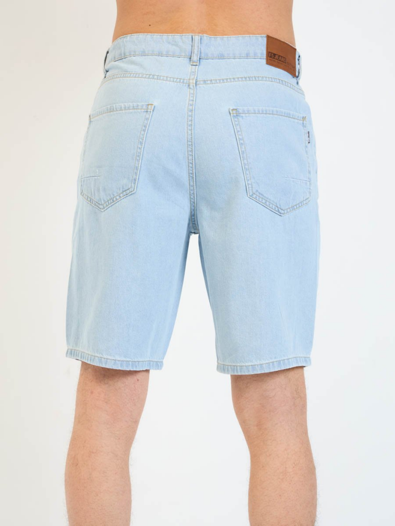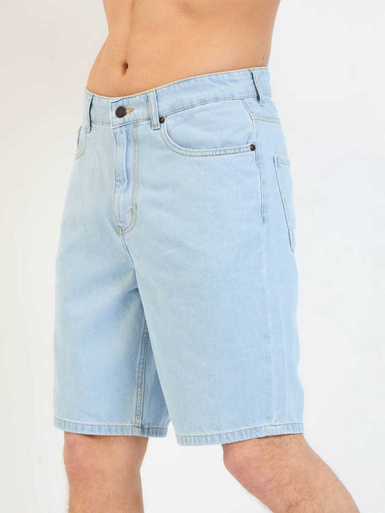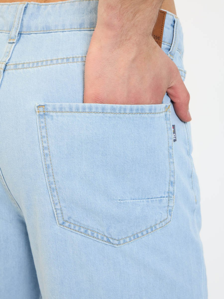 Мужские модные джинсовые шорты с пятью карманами. Посадка Regular fit (полуоблегающие по бедру), Высокая талия спереди и сзади. Застежка на молнии. Выполнены из облегченной хлопковой ткани denim. Светлая стирка "stone wash"с осветлением.