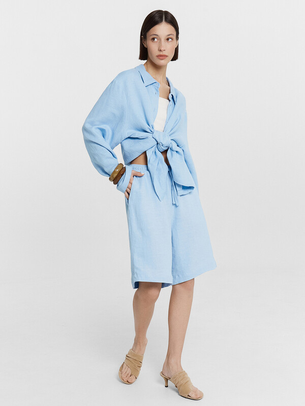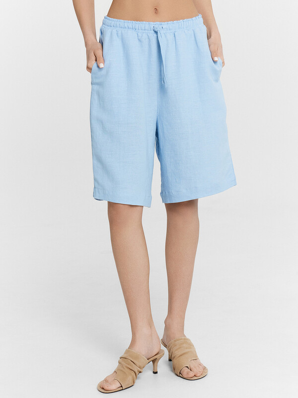 Женские шорты свободного силуэта длиной до колен — это идеальный выбор для теплого времени года, сочетающий комфорт, стиль и натуральные материалы. Эластичный пояс на кулиске обеспечивает удобную посадку и позволяет регулировать объем по талии, адаптируя изделие под индивидуальные особенности фигуры. Боковые карманы-хулиганы добавляют образу непринужденности и функциональности, позволяя удобно разместить мелочи. Нижний срез аккуратно обработан швом вподгибку, что подчеркивает качество пошива и сохраняет форму изделия после стирок. Смесовая ткань из льна и вискозы обладает отличной воздухопроницаемостью, приятна к телу и дарит ощущение легкости даже в жару. Такая модель легко сочетается с топами, футболками или рубашками, создавая расслабленные и стильные летние образы.