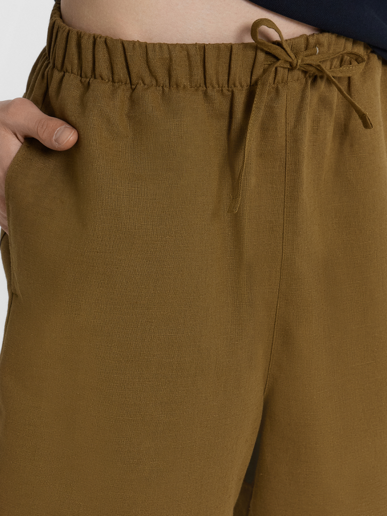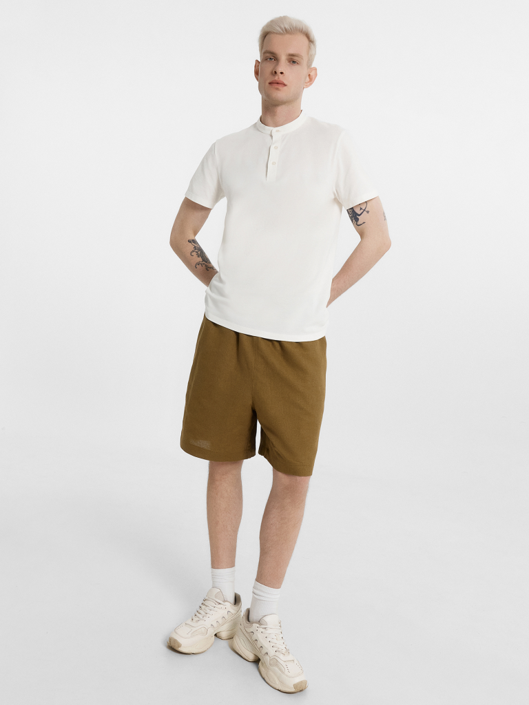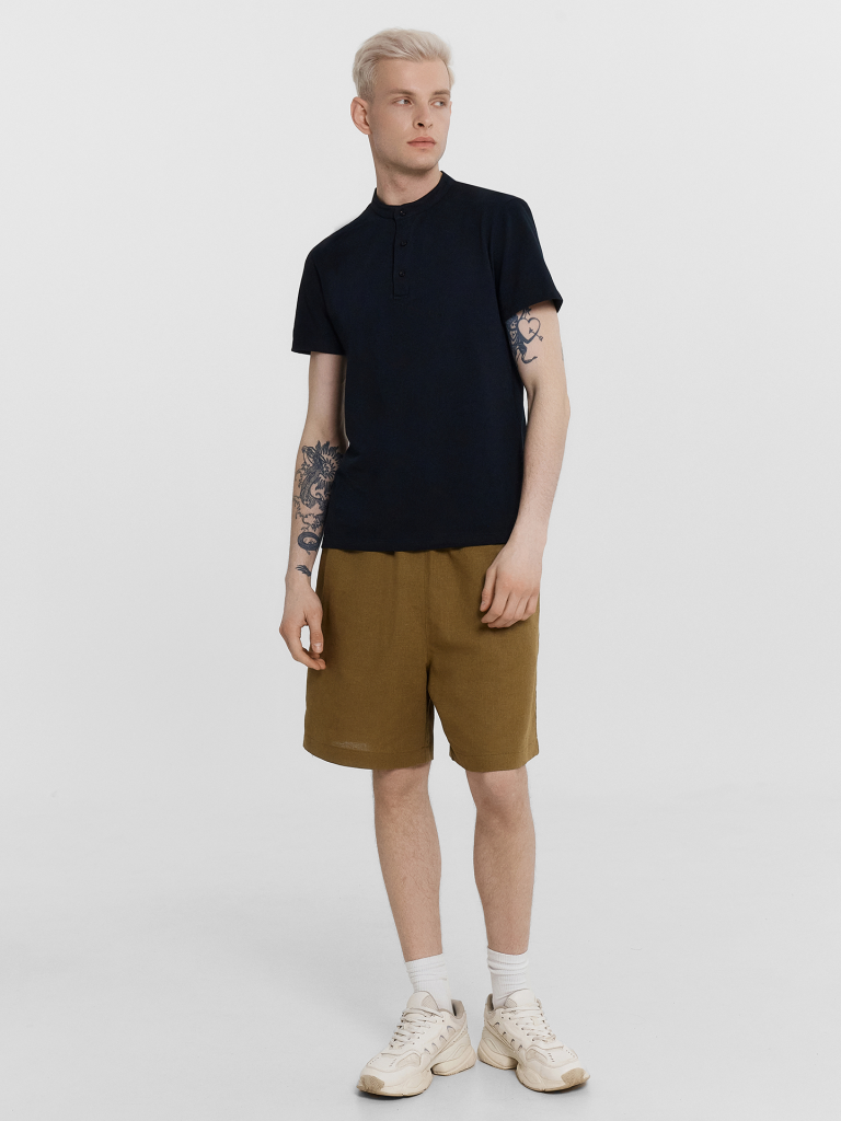 Мужские прямые свободные шорты — это удобная и стильная модель для создания непринужденных летних образов. Средняя посадка обеспечивает комфорт при носке, а эластичный пояс на кулиске позволяет настроить шорты под индивидуальные параметры, гарантируя оптимальную посадку. Функциональные боковые карманы и накладной карман на задней правой детали делают модель практичной и удобной для хранения необходимых мелочей. Нижние срезы шорт аккуратно обработаны швом вподгибку, что обеспечивает их долговечность и стильный внешний вид. Изделие выполнено из сочетания льна и хлопка — материалов с уникальными преимуществами. Лён добавляет ткани воздухопроницаемость и прохладу, что делает эти шорты идеальными для жаркой погоды, а хлопок обеспечивает мягкость, комфорт и прочность. Они легко сочетаются с футболками, рубашками и поло, создавая разнообразные и стильные мужские ансамбли. Отличный выбор для активного отдыха и повседневных прогулок. Рекомендуем!