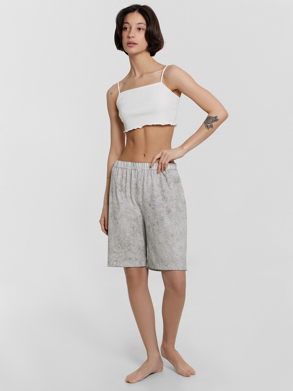 Эти женские домашние шорты — идеальное сочетание комфорта, практичности и стильного дизайна. Свободный силуэт создает ощущение легкости и непринужденности, позволяя наслаждаться отдыхом без стеснения движений. Высокая посадка подчёркивает фигуру и добавляет удобства, идеально подходя для комфортной носки в домашней обстановке. Эластичный пояс мягко фиксирует изделие, обеспечивая удобную посадку и возможность регулирования объема, что делает модель универсальной для разных типов фигуры. Нижний край обработан швом вподгибку, что придает аккуратность и долговечность, позволяя шортам сохранять форму и презентабельный вид даже после многократных стирок. Изготовленные из хлопковой кулирки, шорты обладают высокой воздухопроницаемостью, мягкостью и приятной текстурой. Натуральный материал заботится о коже, обеспечивая комфорт в течение всего дня и позволяя телу дышать. Этот удобный и стильный элемент домашнего гардероба идеально подходит для отдыха, сна или неспешных утренних ритуалов. Практичные и лёгкие — ваш идеальный выбор для уютных моментов!