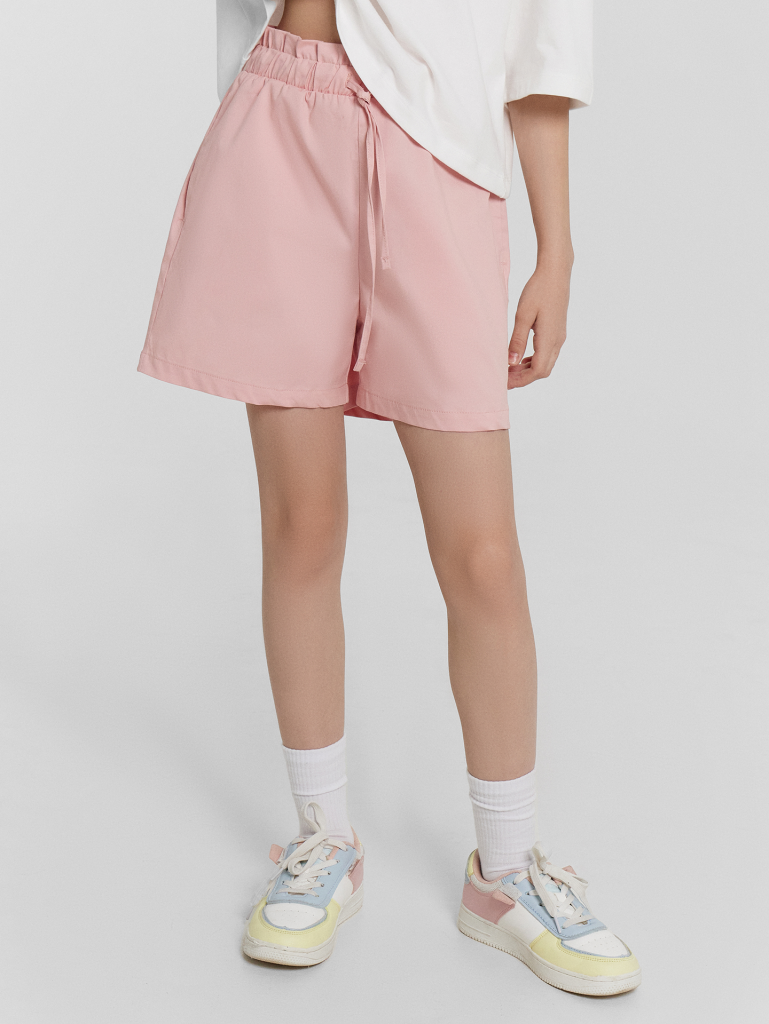 Шорты для девочек. Силуэт свободный. Пояс отрезной из основного полотна, с эластичной