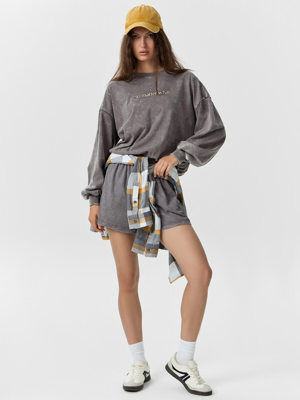 Женские шорты свободного кроя — это свежий взгляд на повседневную летнюю одежду, сочетающий стиль и функциональность. Короткая длина и высокая посадка визуально удлиняют ноги, подчеркивая фигуру, а свободный силуэт обеспечивает абсолютную свободу движений и комфорт в течение всего дня. Эластичный пояс мягко фиксирует шорты на талии, позволяя им подстраиваться под индивидуальные особенности тела без ощущения сдавленности. Боковые швы скрывают практичные карманы, в которых удобно разместить необходимые мелочи, а накладной карман на задней правой половине — это дополнительный акцент, придающий модели легкую нотку уличного стиля. Обработка нижних срезов в подгибку обеспечивает аккуратный и завершенный вид, сохраняя форму изделия после стирки. Изготовленные из натурального хлопка, шорты отличаются мягкостью и воздухопроницаемостью, делая их идеальными для жарких дней. Это универсальная вещь, которую легко сочетать с майками, топами или рубашками — выбор, который точно оценит любительница легкого, стильного и удобного гардероба.