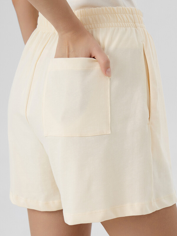 Свободные и стильные женские шорты – ваш незаменимый спутник для жарких летних дней! Модель с высокой посадкой идеально подчеркивает линию талии, а эластичный пояс обеспечивает удобную и комфортную посадку. Практичные боковые карманы и накладной карман сзади добавляют функциональности, позволяя хранить мелочи всегда под рукой. Шорты выполнены из натуральной хлопковой кулирки, что делает их мягкими, легкими и приятными к телу, обеспечивая комфорт даже в самую жаркую погоду. Нижние срезы аккуратно обработаны швом вподгибку, что придает изделию завершенный вид. Этот стильный и практичный элемент гардероба подойдет для прогулок, отдыха или встреч с друзьями – свобода и комфорт в каждом шаге!