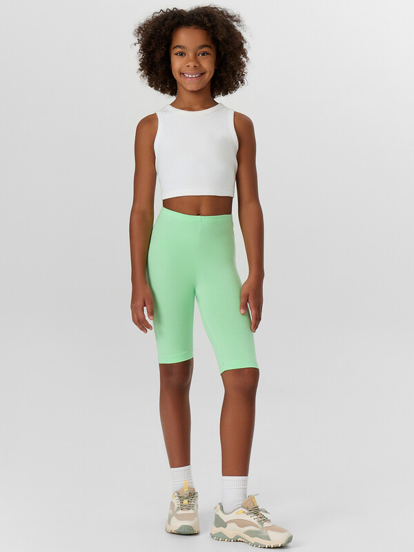 Детские шорты-велосипедки для девочек из высококачественного хлопка. Длина шортов – до колена, силуэт – облегающий. Пояс с эластичной тесьмой. Стильный и очень комфортный вариант для девочек на каждый день для спорта, игр, отдыха, прогулок. Мягкие и комфортные в носке, отлично тянутся. Дополнить такие велосипедки можно любым верхом из линейки детской одежды для девочек. Рекомендуем!