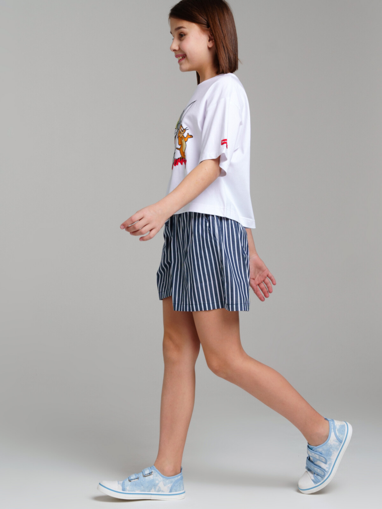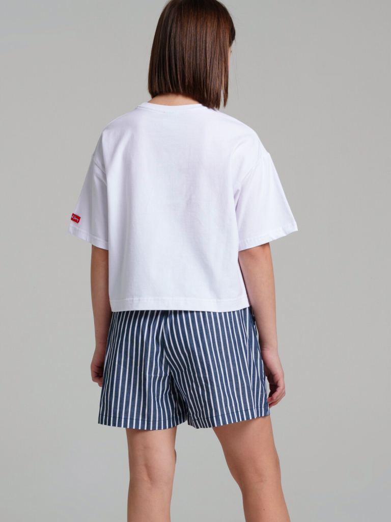 Шорты свободного кроя из поплина. 100% хлопок. Эластичный пояс со шнурком. Карманы в боковых швах.