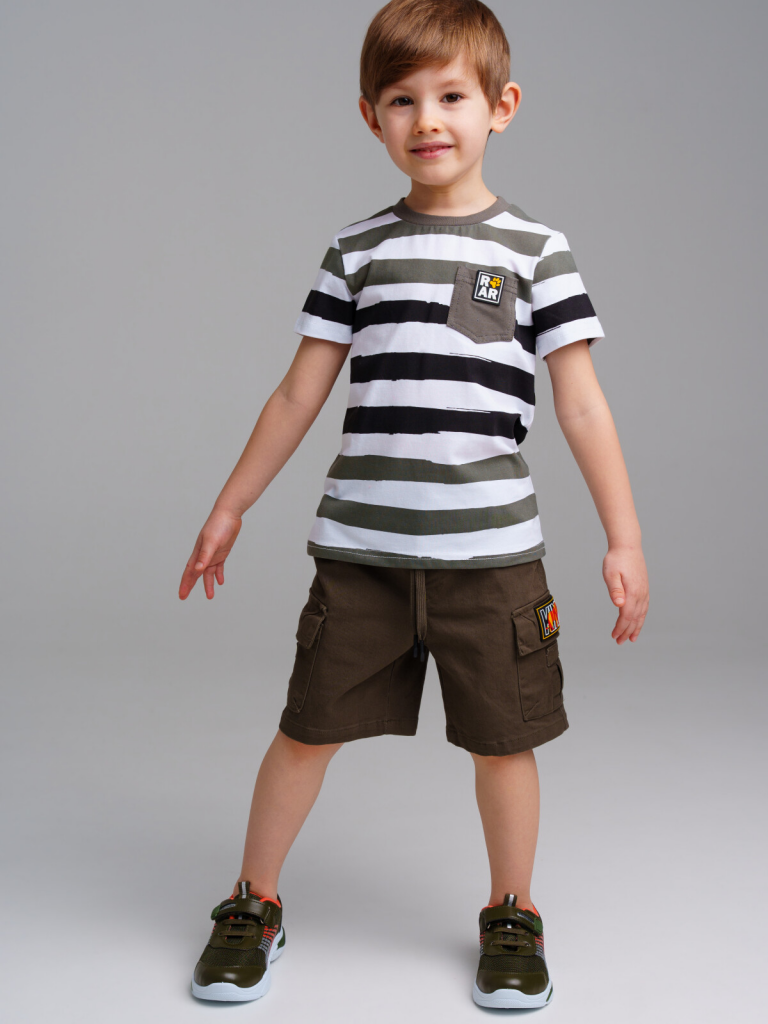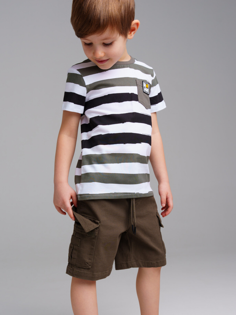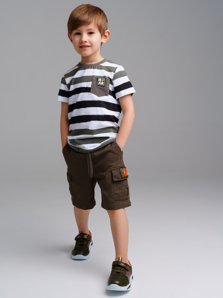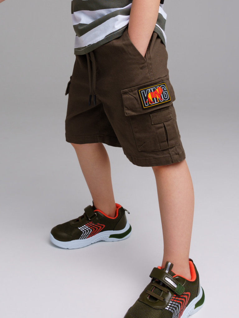 Шорты из твила для мальчика. Высокое содержание хлопка 98%. Благодаря наличию эластана в составе ткани изделие держит форму и меньше мнется. Эластичный пояс со шнурком. Оптимальная посадка, шорты не сползают при движении. Функциональные карманы.