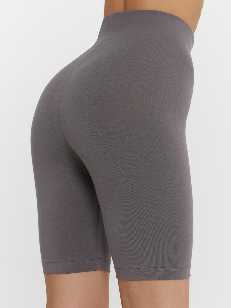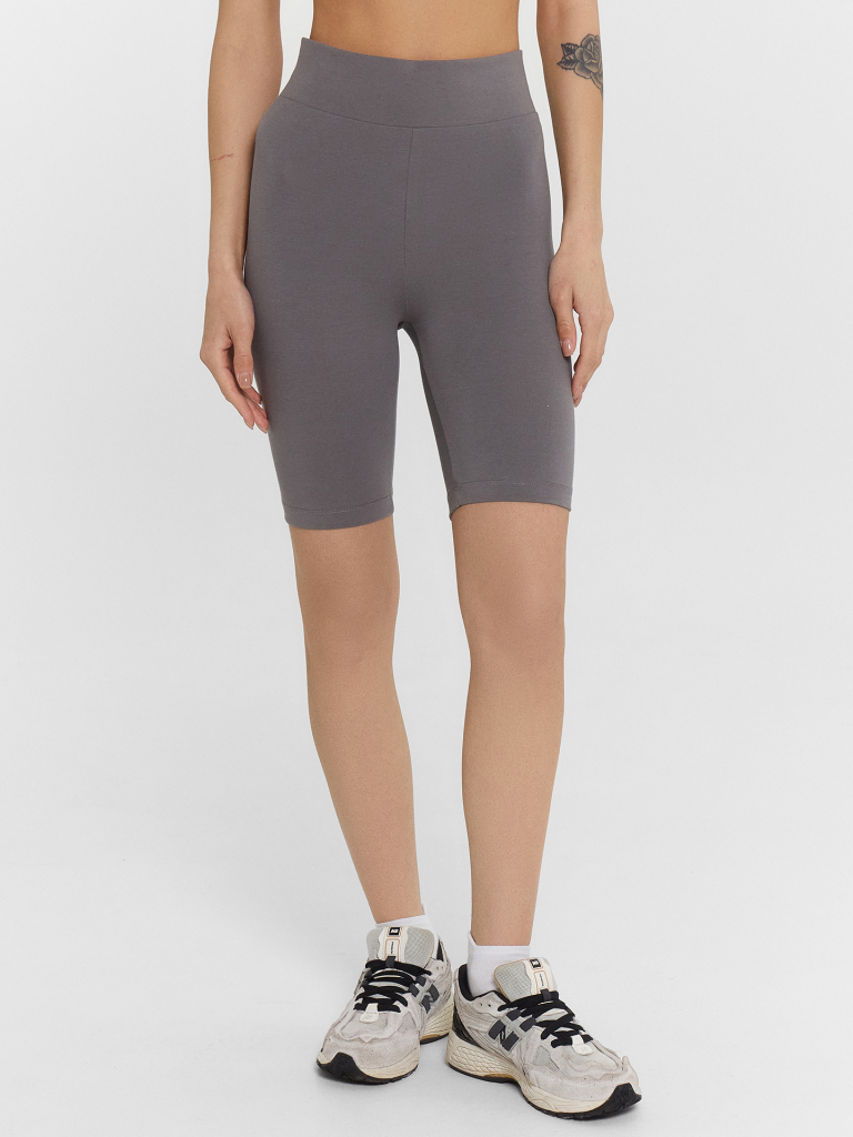 Шорты-велосипедки облегающего силуэта. Выполнены из нежной хлопковой кулирки. Длина модели выше колен. Линия талии завышенная. Широкий отрезной пояс и эластичная тесьма в талии дарят особый комфорт.