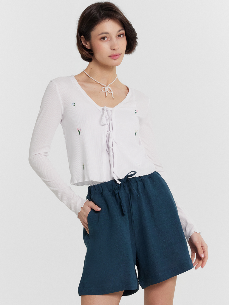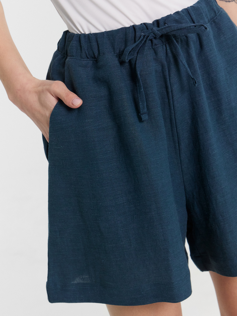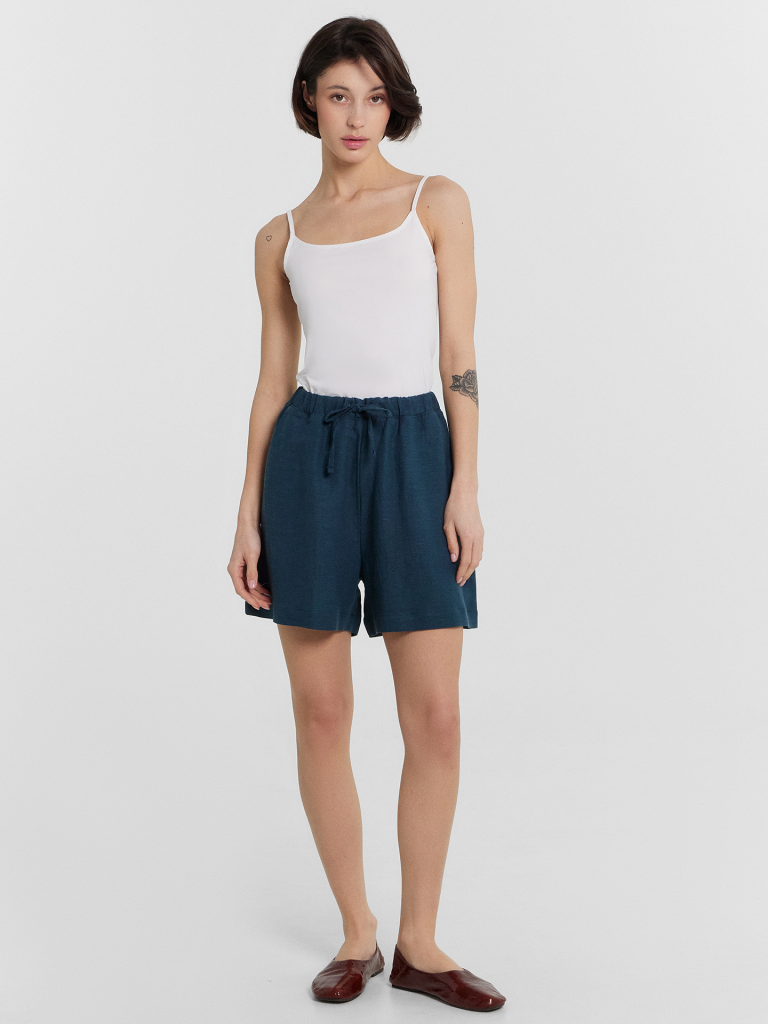 Женские шорты свободного силуэта с боковыми карманами и эластичным поясом на кулиске - это идеальное сочетание комфорта и стиля. Модель выполнена из смесового льна и вискозы, что придает изделию уникальные преимущества. Лён известен своей прочностью, долговечностью и прекрасной воздухопроницаемостью, что делает одежду из него идеальной для жаркой погоды. Он также обладает природными антибактериальными свойствами и гипоаллергенностью. В то время как вискоза добавляет мягкость и гладкость, улучшая тактильные ощущения и комфорт при носке.