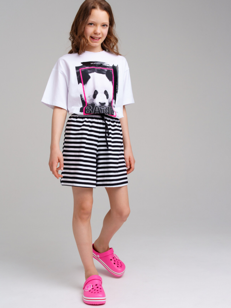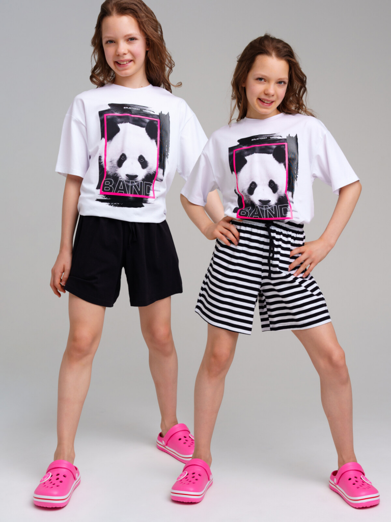 Шорты трикотажные для девочек, 2 шт в комплекте черный,белый