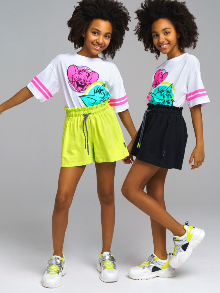Шорты трикотажные для девочек, 2 шт в комплекте светло-зеленый,черный