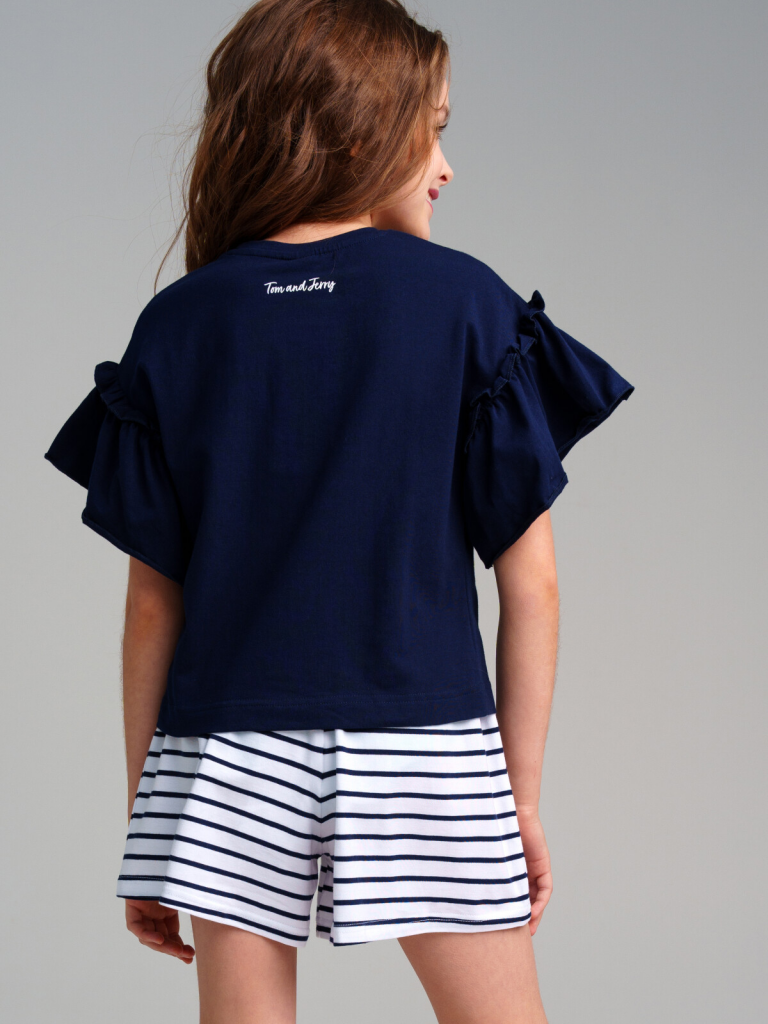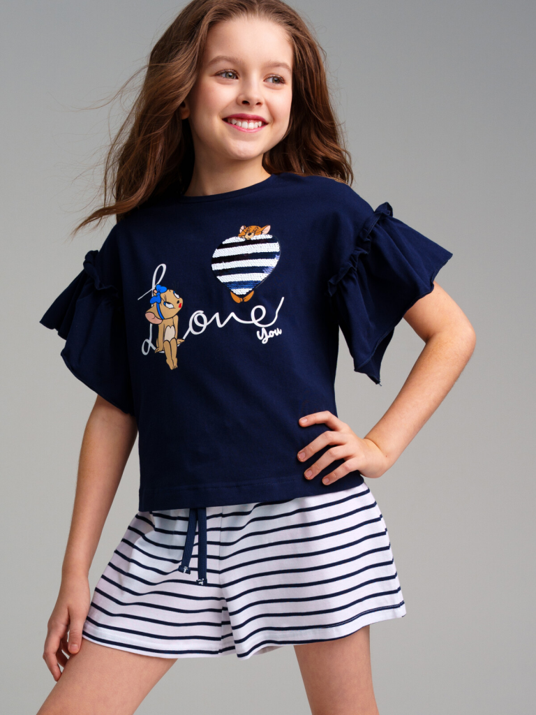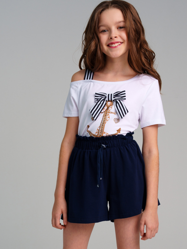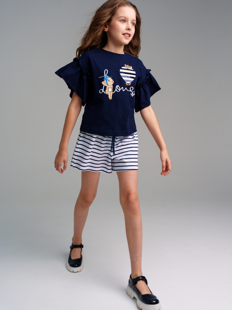 > Шорты трикотажные для девочек, 2 шт в комплекте тёмно-синий,белый