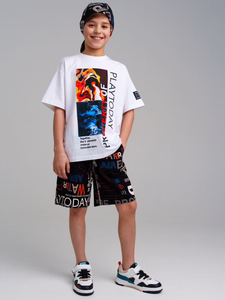 Комплект шорт из качественного эластичного и приятного на ощупь трикотажа джерси. Высокое содержание хлопка 95%. Благодаря наличию 5% эластана в составе ткани изделие держит форму и меньше мнется. Посадка comfort fit - свободный крой. Эластичный пояс со шнурком. Оптимальная посадка, шорты не сползают при движении. Карманы в боковых швах.