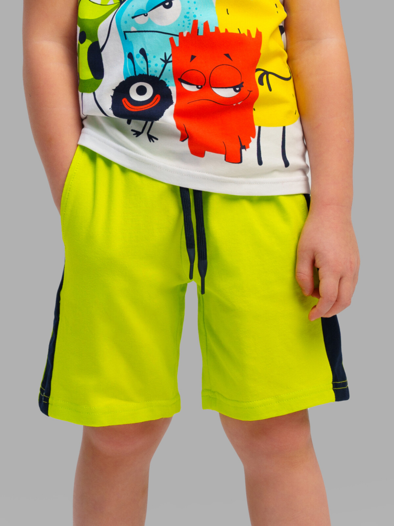 Набор детских шорт для мальчика. Комплект шорт из качественного и приятного на ощупь трикотажа джерси. Шорты на резинке со шнурком. Боковые карманы. Высокое содержание хлопка 95%. Благодаря наличию эластана в составе ткани изделие держит форму и меньше мнется. Модель выполнена из качественного и приятного на ощупь трикотажа.