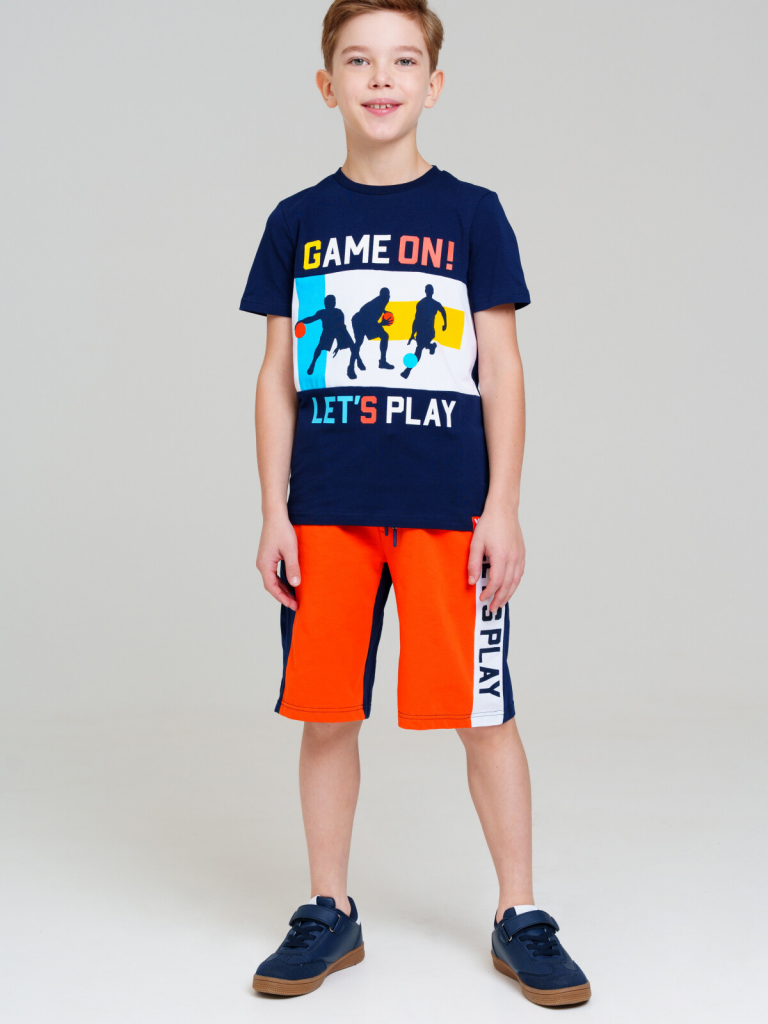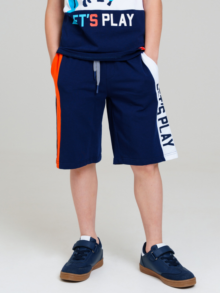 > Шорты трикотажные для мальчиков, 2 шт в комплекте тёмно-синий,оранжевый,белый