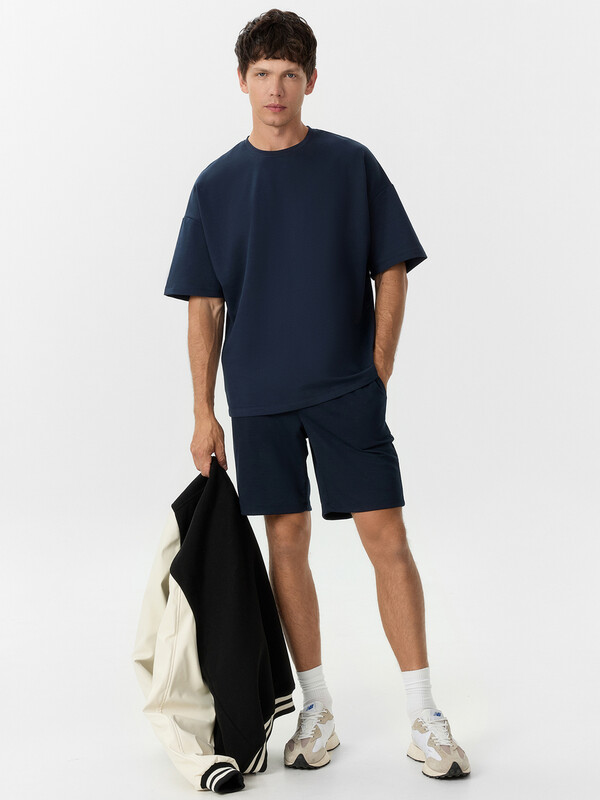Мужские шорты из тонкого трикотажного материала академик — это удачное сочетание комфорта, практичности и лаконичного дизайна. Прямой силуэт обеспечивает свободу движений и универсальность в сочетании с различными элементами гардероба. Пояс из основного полотна с эластичной тесьмой внутри мягко фиксирует изделие на талии, не создавая давления. Карманы в боковых швах добавляют функциональности, позволяя удобно разместить необходимые мелочи. Материал академик отличается легкостью, гладкой фактурой и хорошей воздухопроницаемостью, что делает шорты особенно комфортными в теплое время года. Такая модель подойдет для прогулок, отдыха или домашнего использования, сочетая в себе удобство и сдержанный стиль.