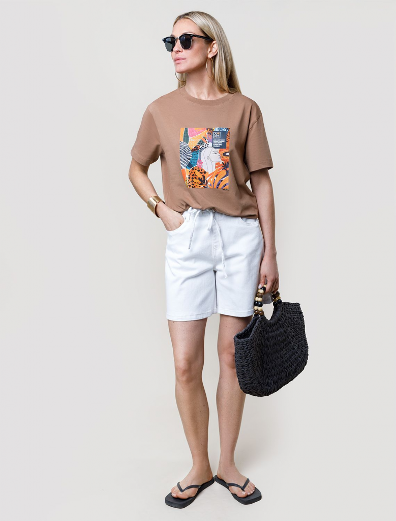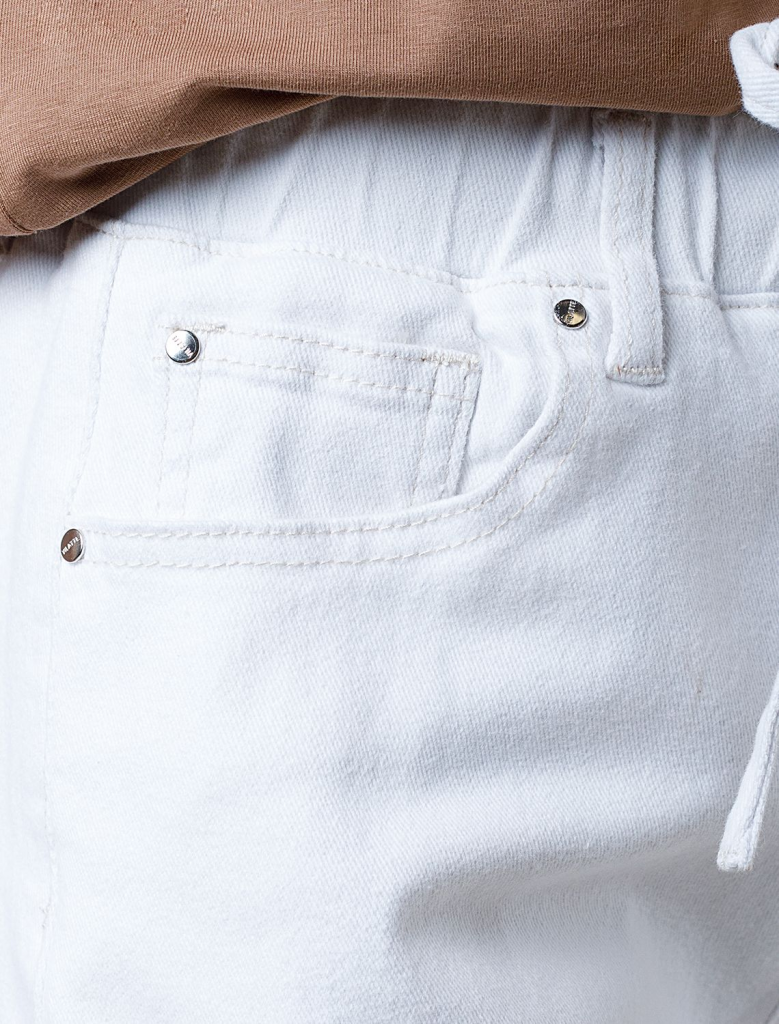 Шорты выполнены из эластичного денима. Модель с ложным гульфиком и поясом из эластичной резинки со шнурком из основного полотна. За счет эластана изделие хорошо тянется и гарантирует комфорт и формоустойчивость. Подходит для любой фигуры.