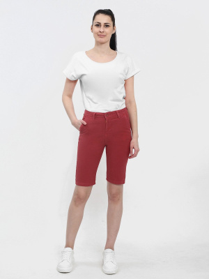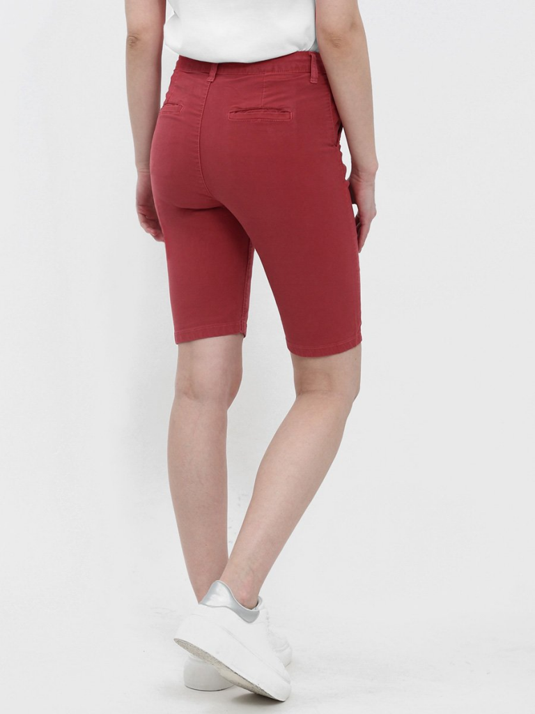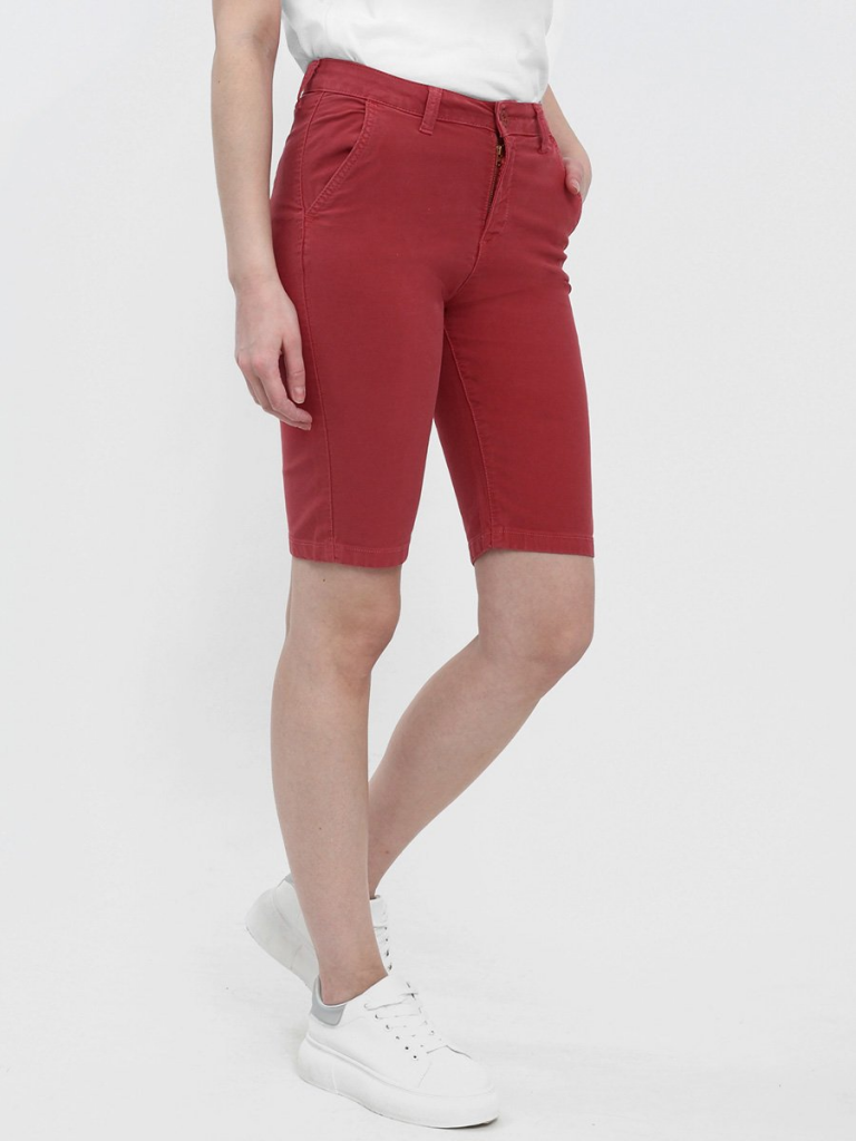 Женские классические шорты Chinos. Посадка Regular fit (полуоблегающие по бедру), заужены к низу. Высокая талия. Застежка на молнии. Сзади прорезные карманы "в листочку". Выполнены из отбеленной эластичной мягкой ткани gabardine stretch. Изделие постирано в готовом виде после пошива. Параметры указаны для размера 28. Длина внутреннего шва для всех размеров - 28, 0 см.